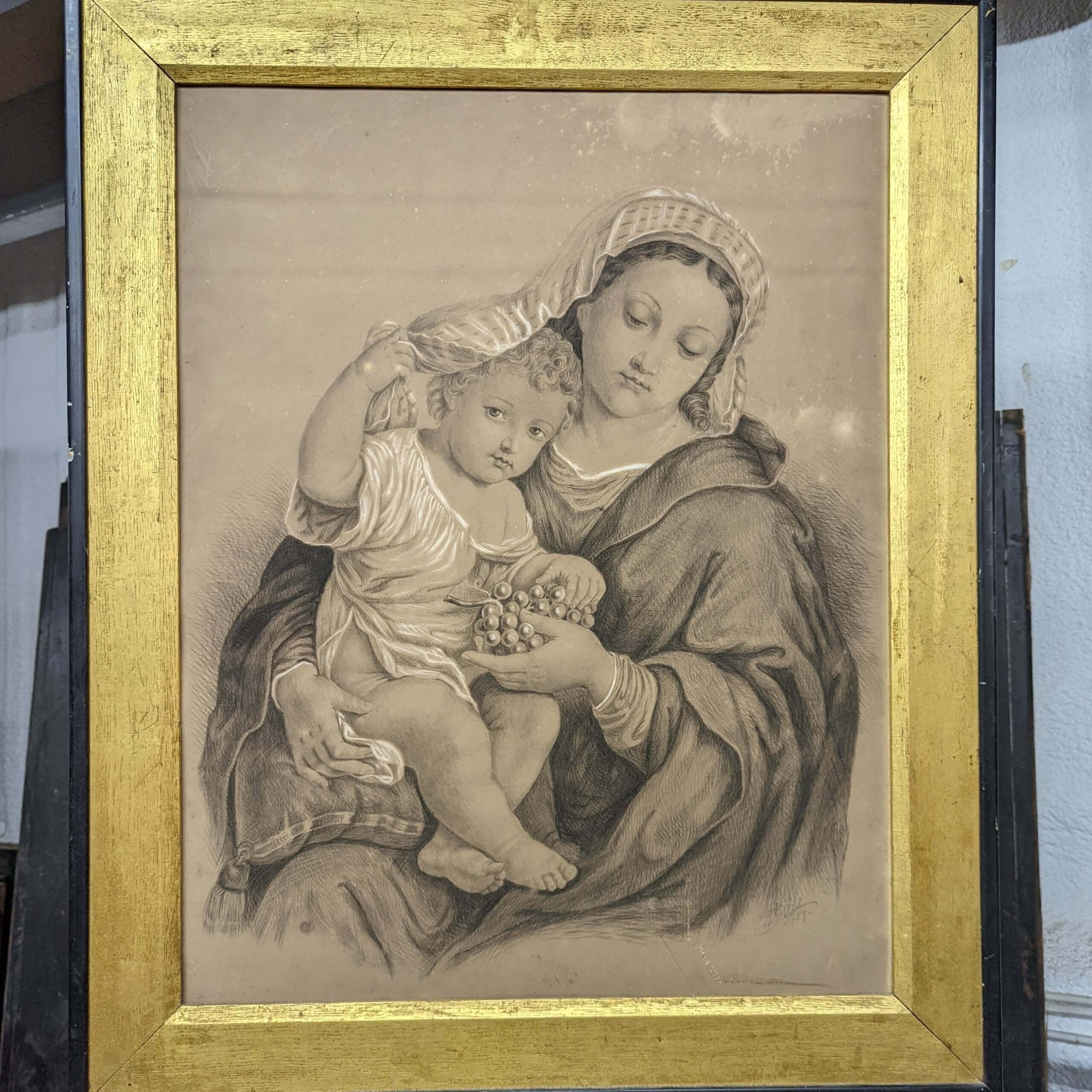 Our product shown on this page 1847 Dated Antique Original Pencil Charcoal & Chalk Drawing of Virgin & Child (SOLD) is currently available for hire.