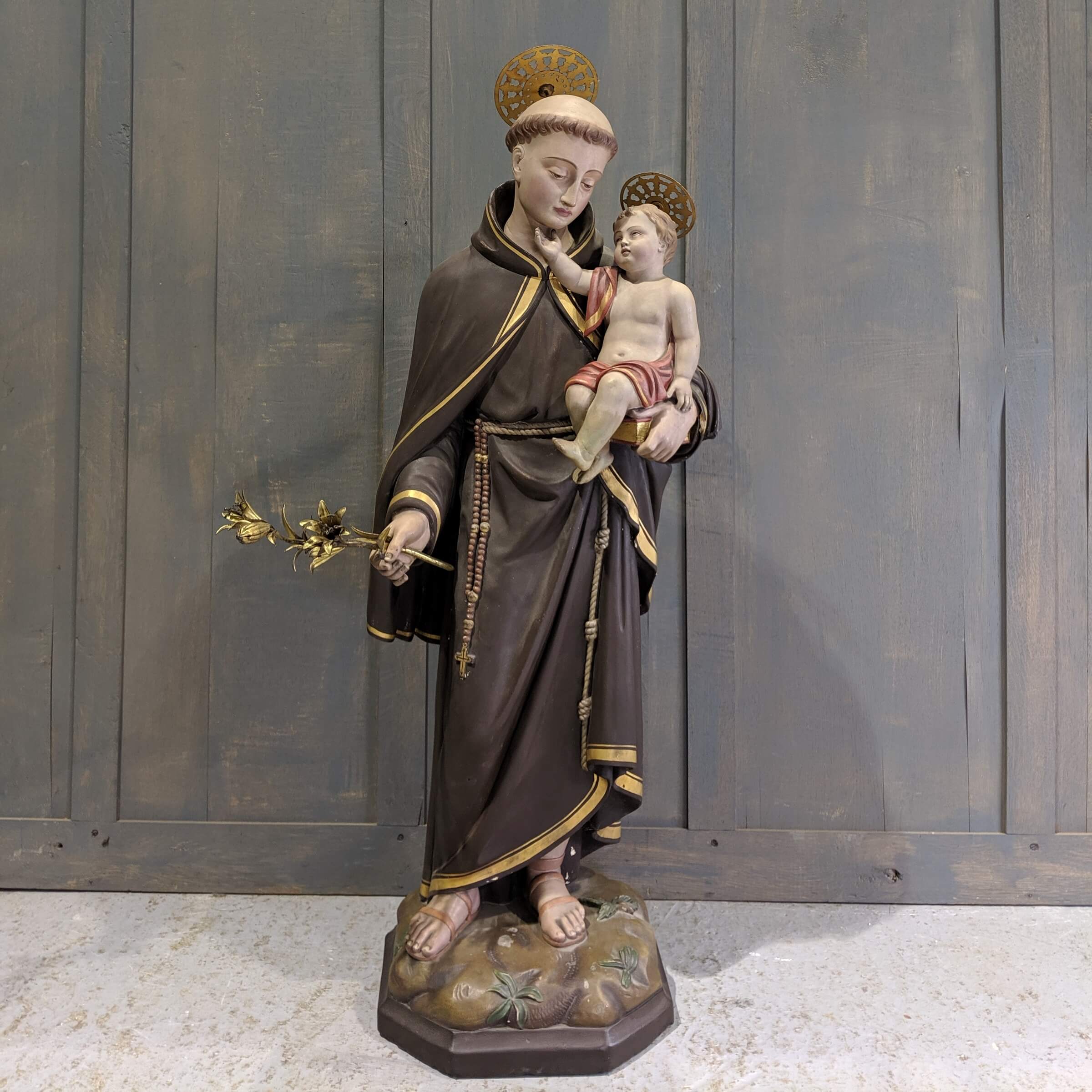 Our product shown on this page 1860 Antique St Antony & Child from Maricolen Convent, Antwerp (SOLD) is currently available for hire.