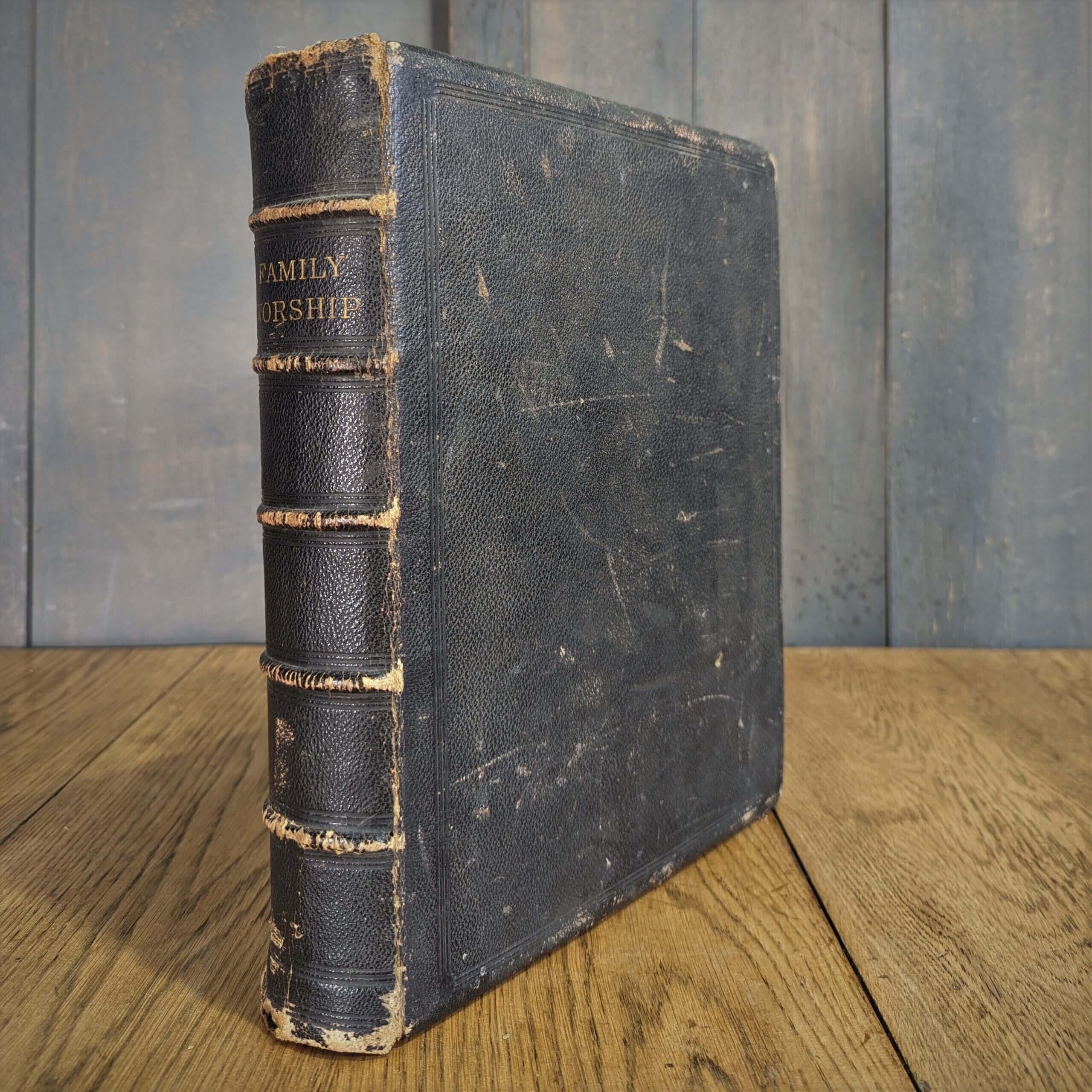 Our product shown on this page 1860’s Large Leather Bound Book of Family Worship with Illustrations (SOLD) is currently available for hire.