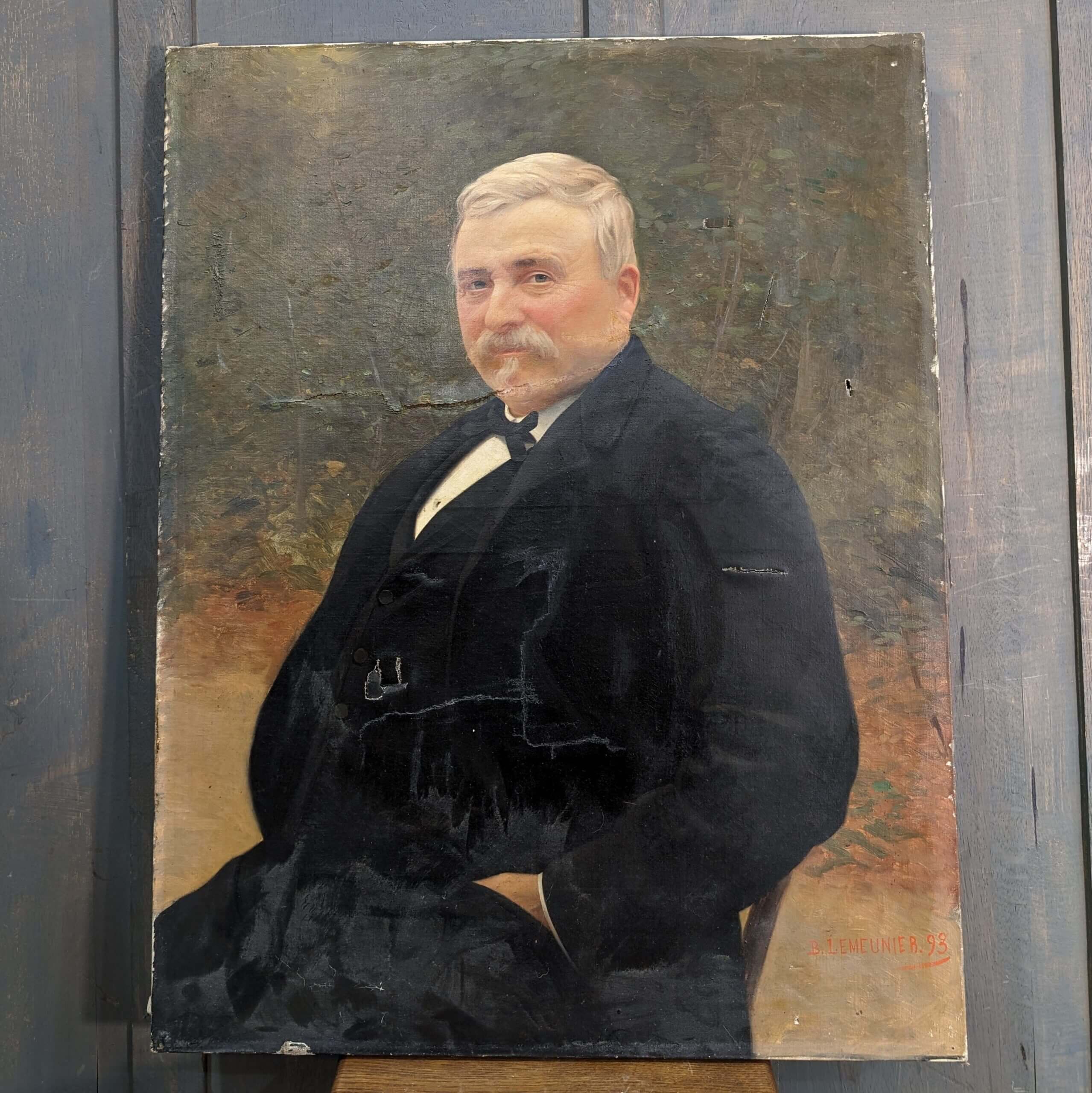 Our product shown on this page 1893 Large Distressed Oil Painting of a French Gentleman by B.Lemeunier (SOLD) is currently available for hire.