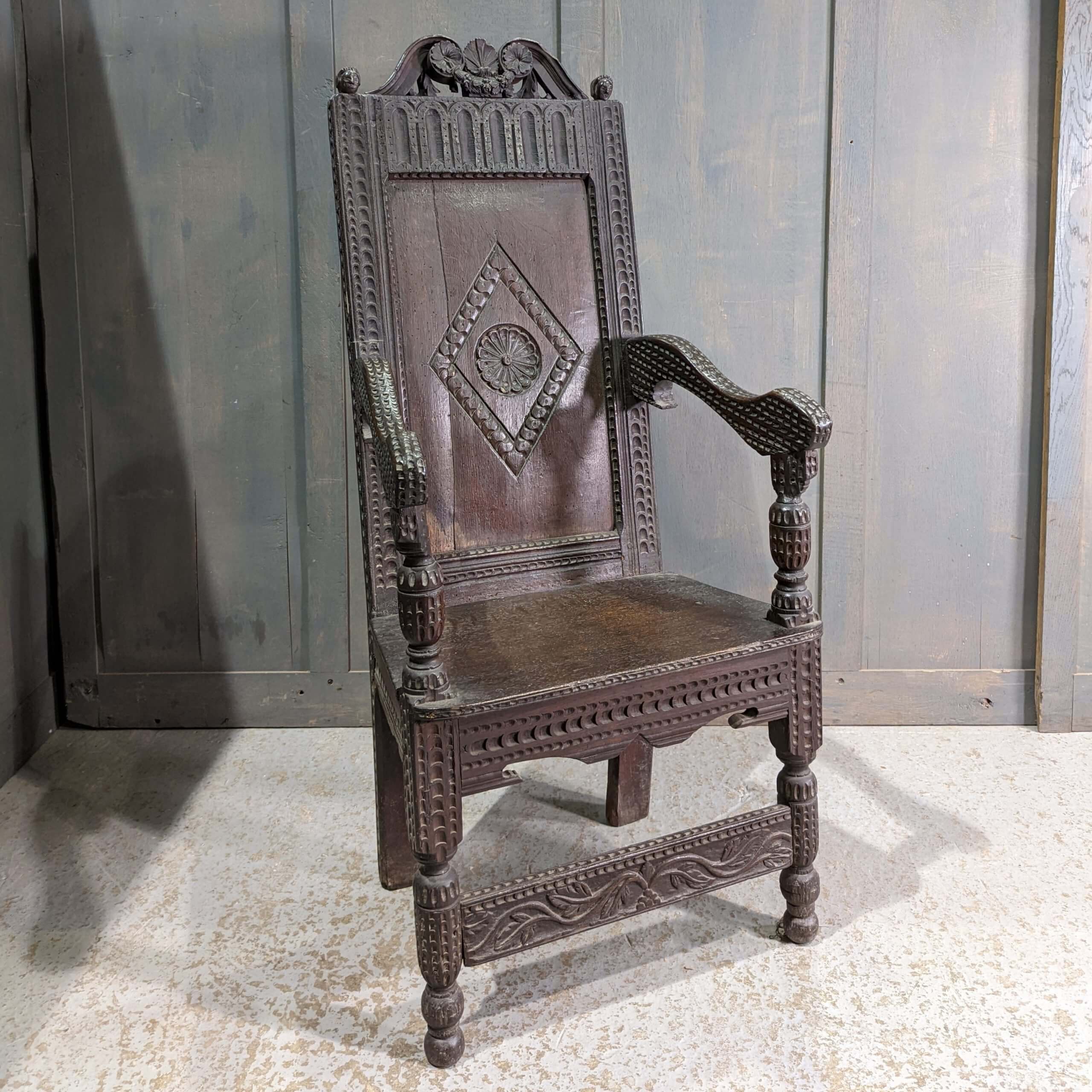 Our product shown on this page 18th & 19th Century Carved Antique Oak Wainscot Chair with Heads (SOLD) is currently available for hire.