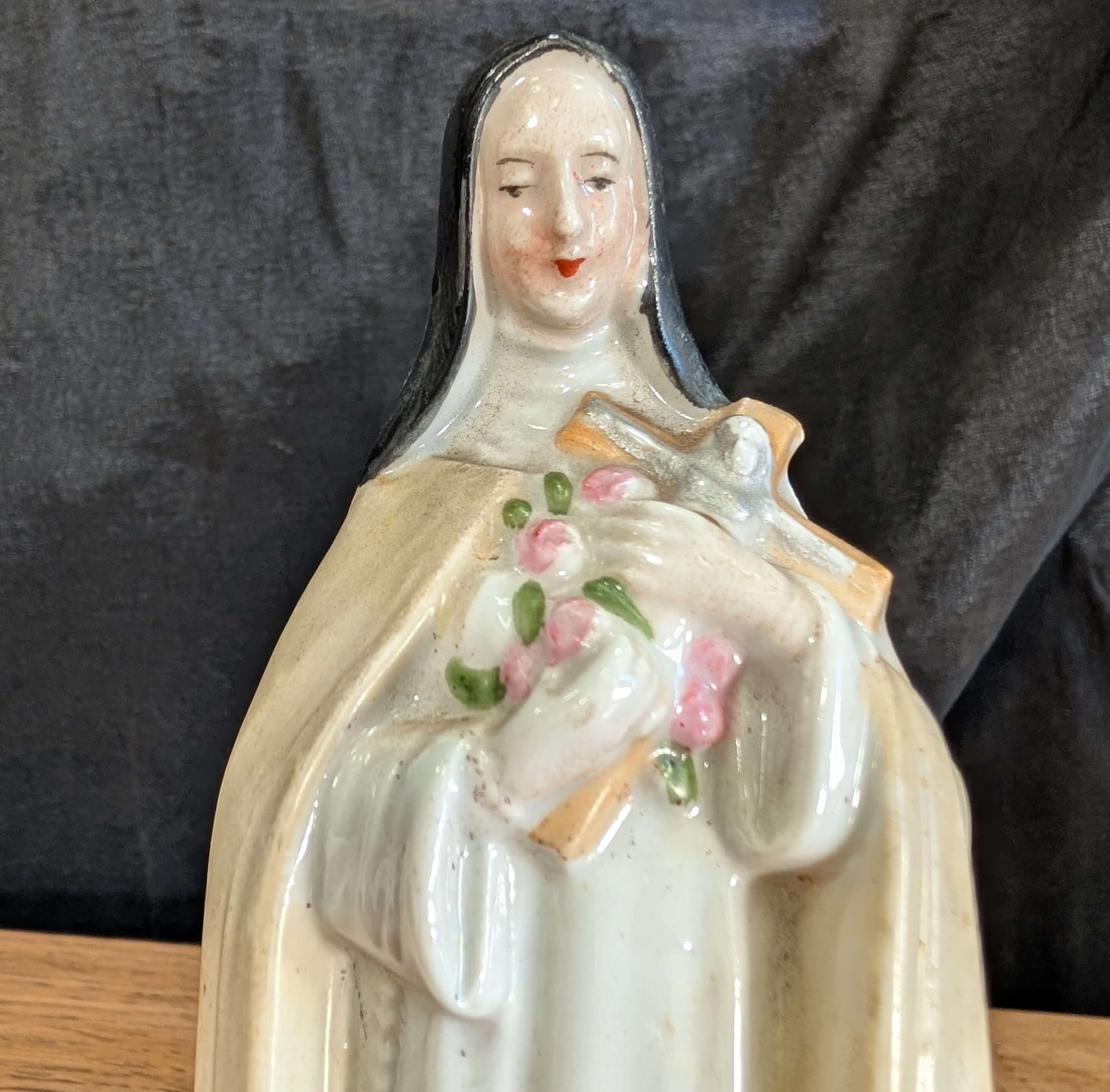 Our product shown on this page 1900’s Antique French Porcelain Figurine of St Therese Lisieux ‘The Little Flower’ is currently available for hire.
