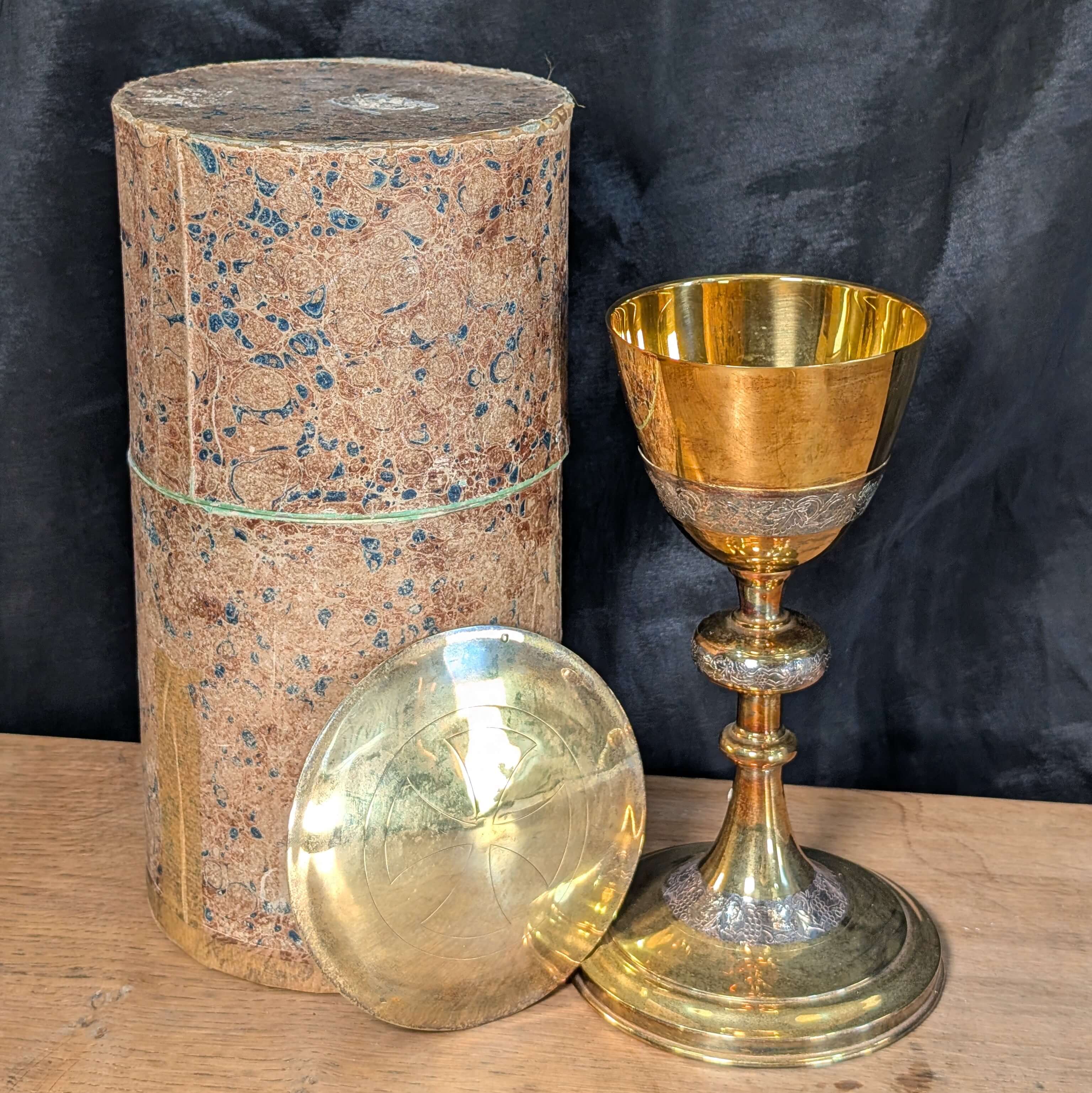 Our product shown on this page 1920 Sterling Silver Gilt French Chalice & Paten by Charles Favier et Cie (SOLD) is currently available for hire.