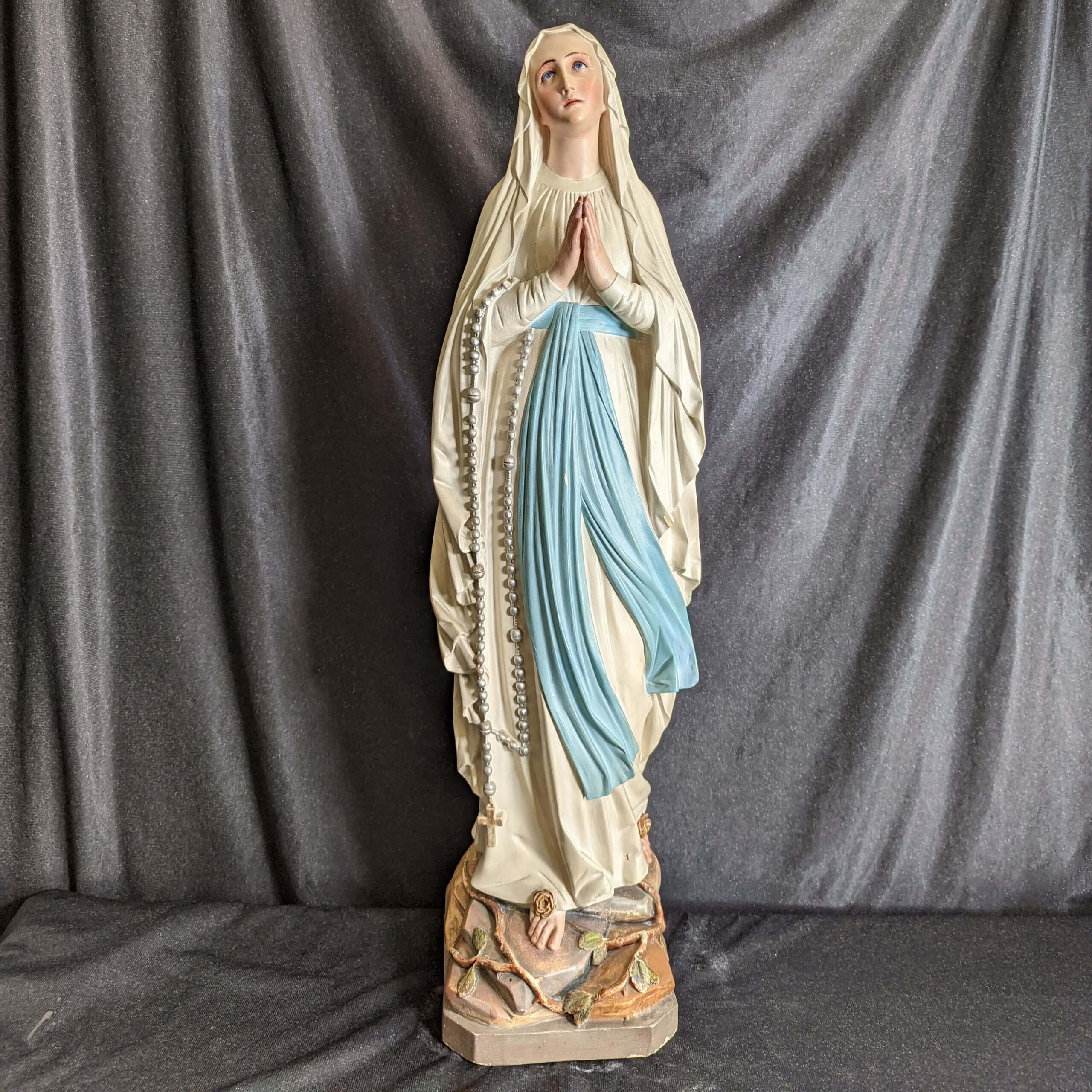 1920’s Vintage French Mid to Large Statue of Our Lady of Lourdes BVM with Glass Eyes (SOLD)
