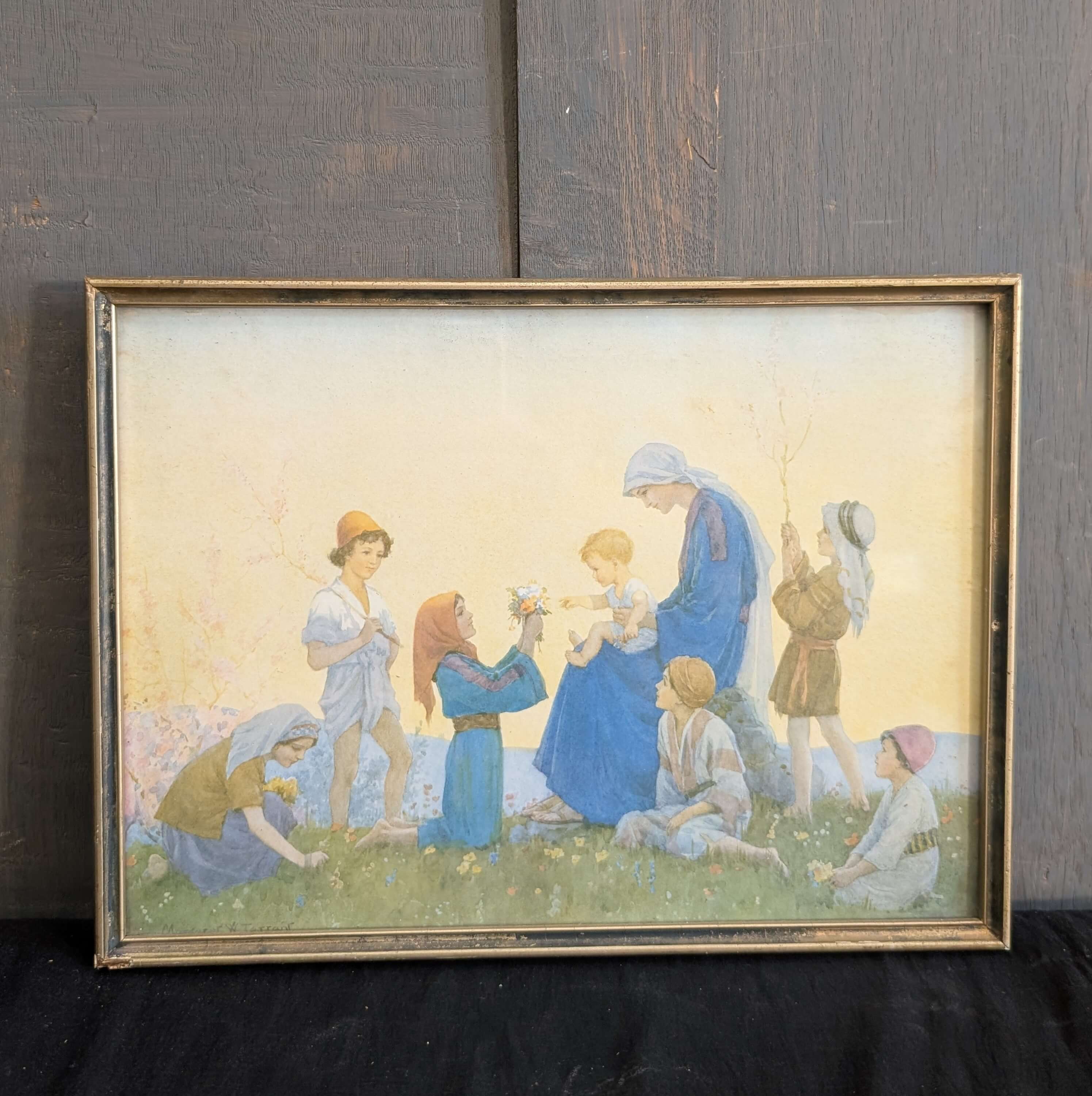 1930’s Vintage Framed Margaret Tarrant Picture ‘The First Flower Service’