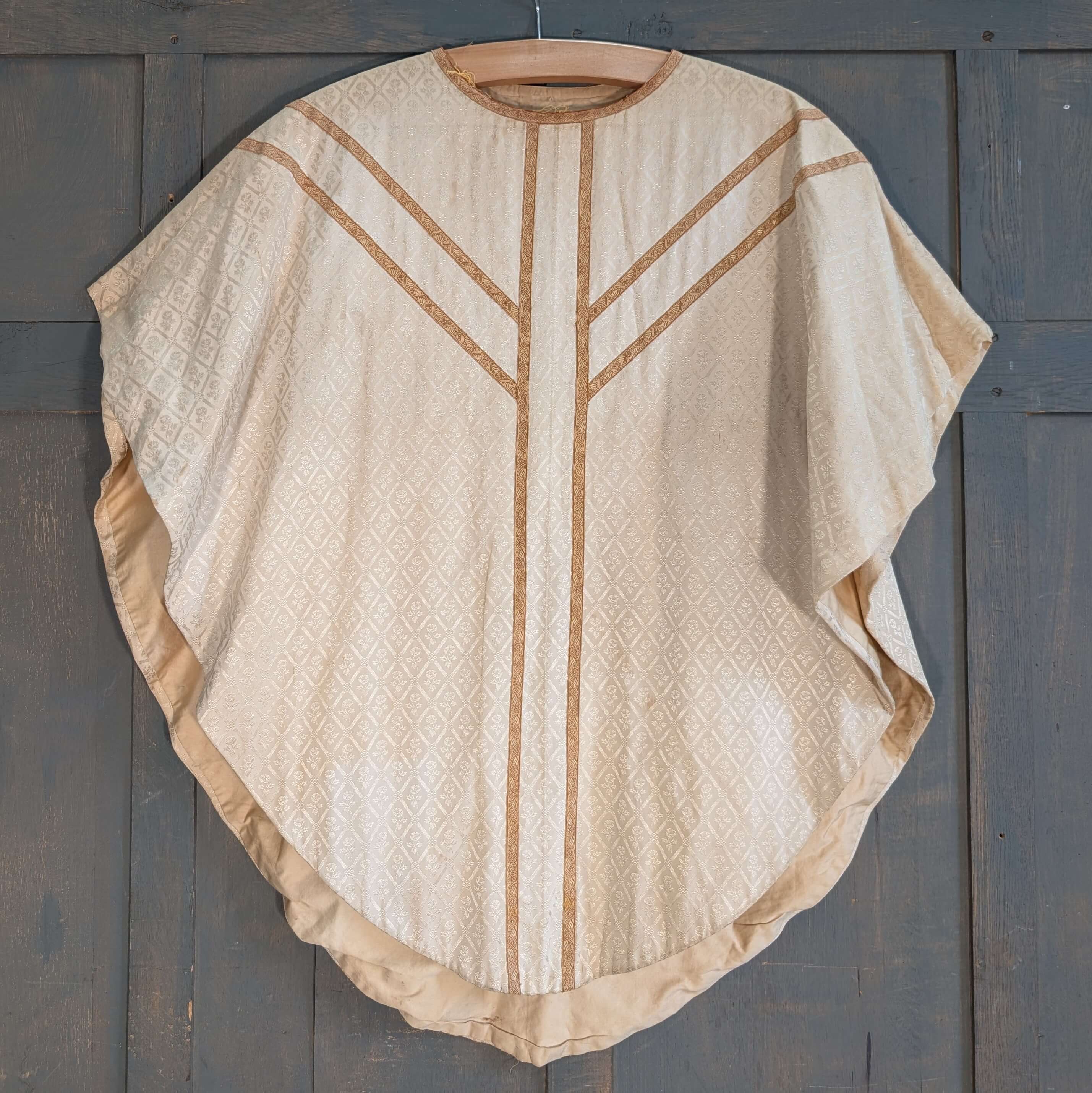Our product shown on this page 1930’s Vintage Ivory Van Heems Chasuble Project (SOLD) is currently available for hire.