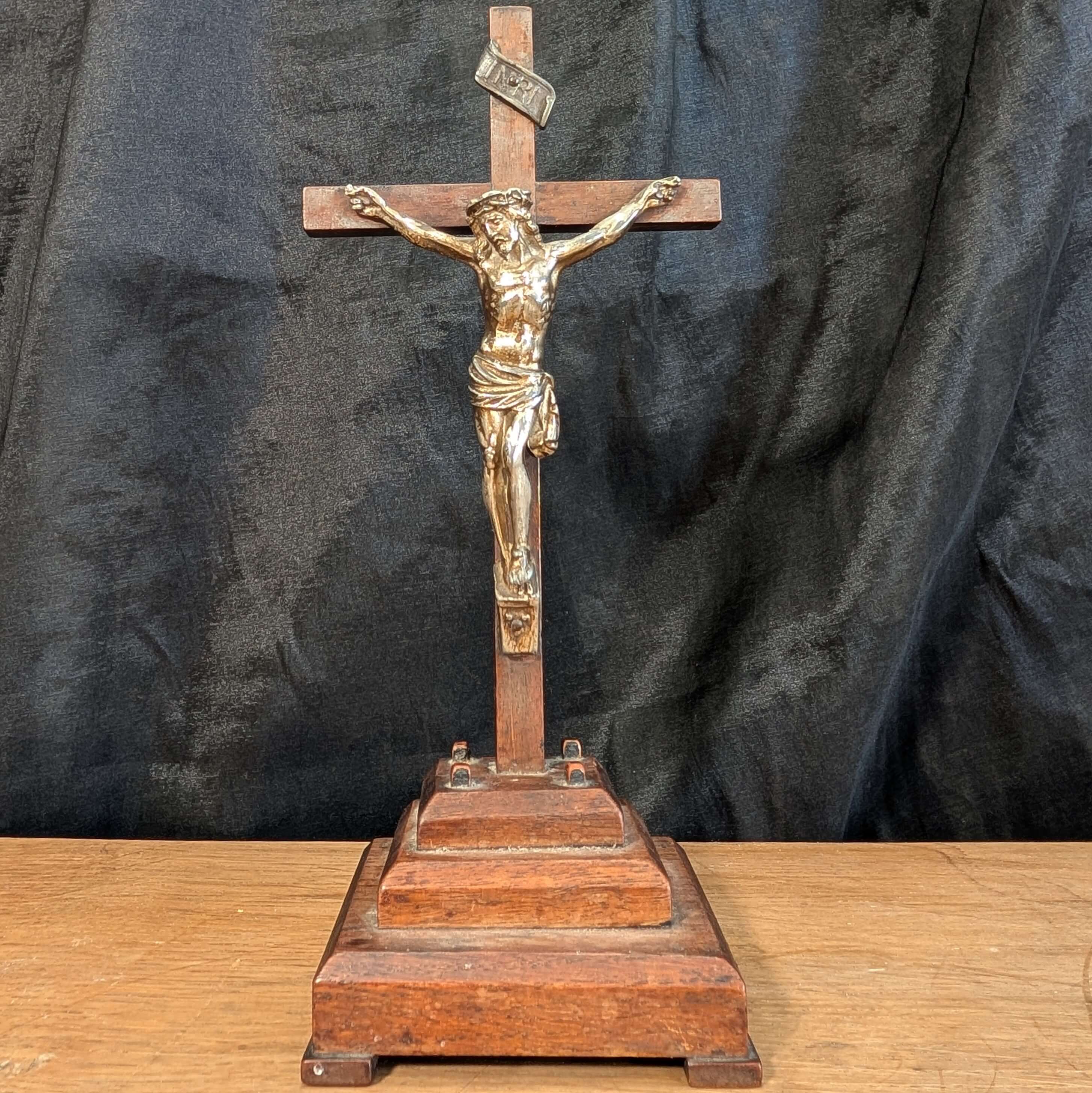 Our product shown on this page 1930’s Vintage Teak and Metal Corpus French Standing Crucifix (SOLD) is currently available for hire.