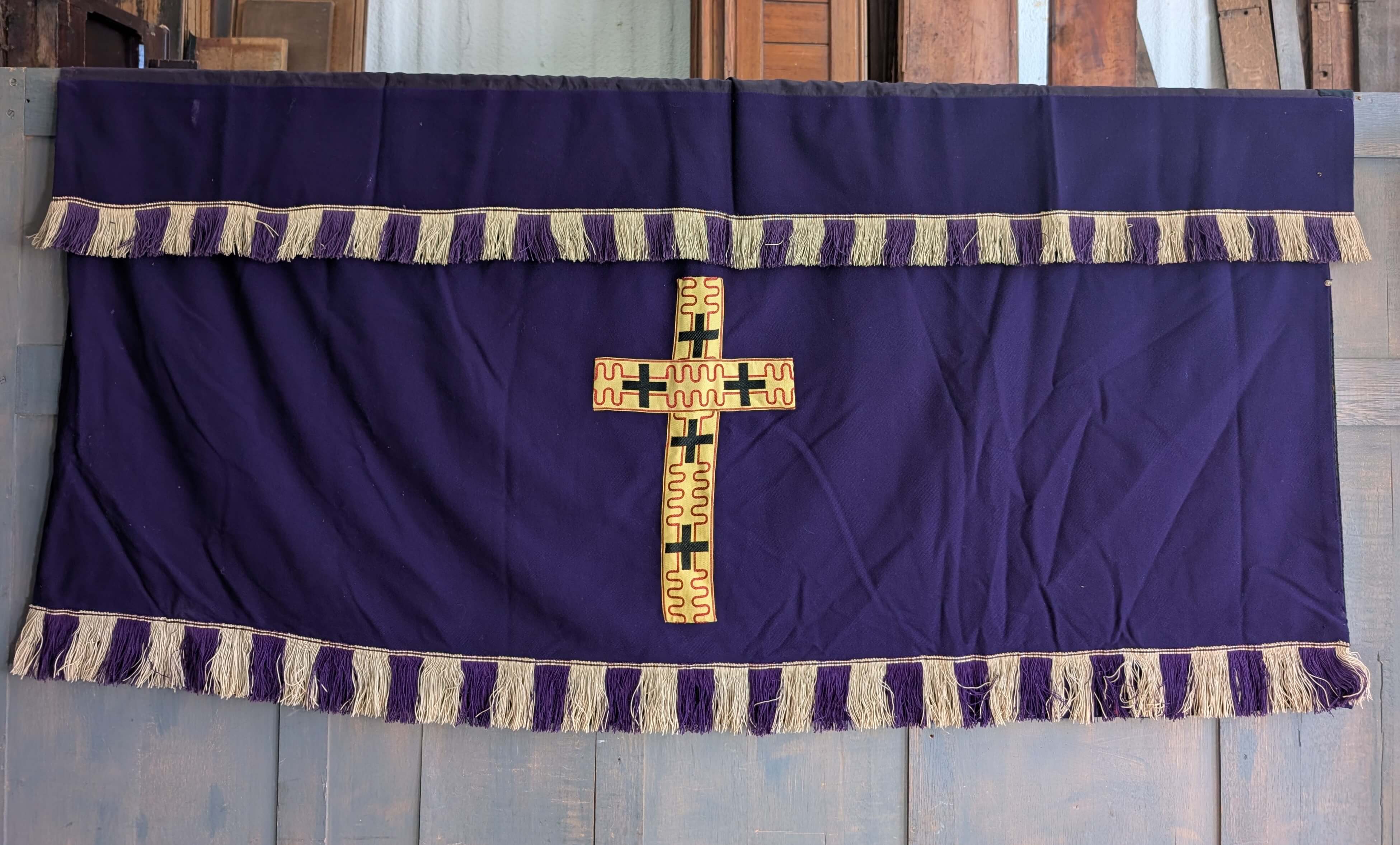 Our product shown on this page 1940’s Simple Purple Lectern Frontal With Cross is currently available for hire.