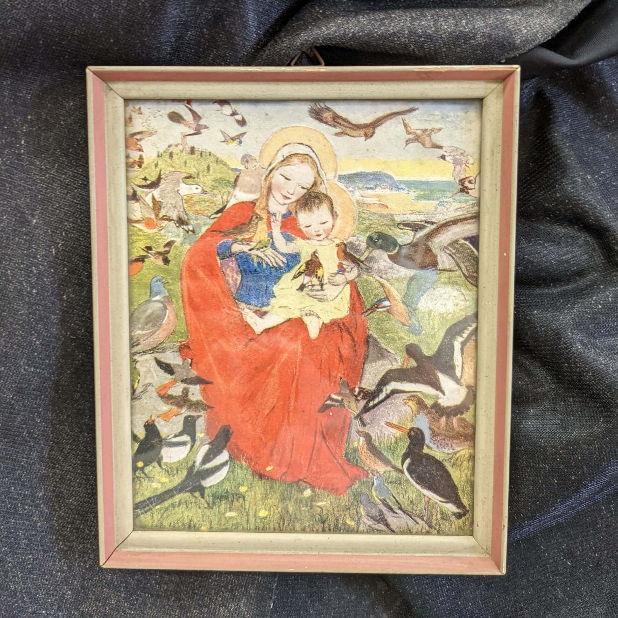 Our product shown on this page 1940’s Vintage Print of ‘Madonna Child & Birds’ by Muriel Dawson (SOLD) is currently available for hire.