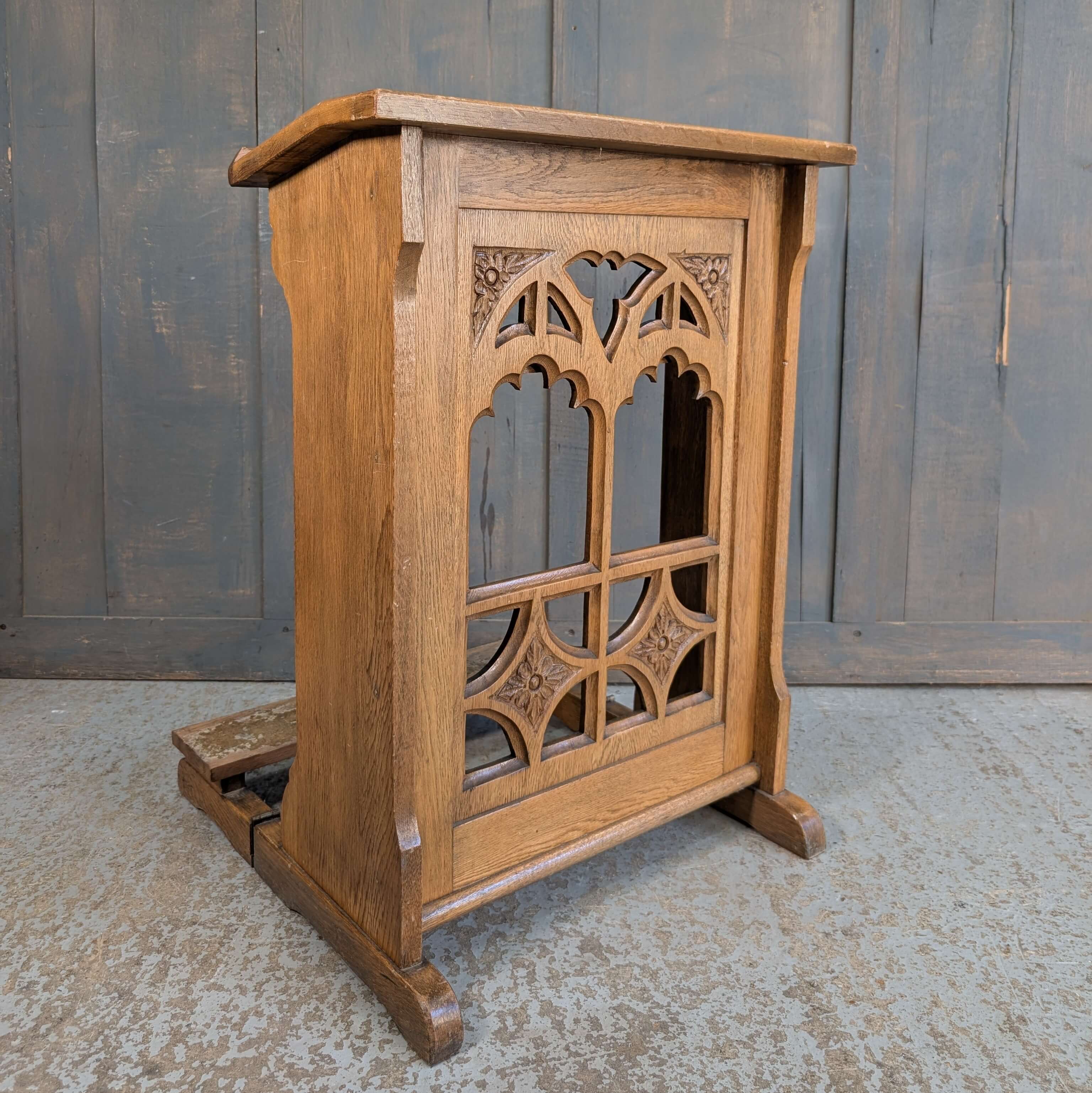 Our product shown on this page 1960’s Gothic Oak Prie Dieu Prayer Desk from St James Rhossdu (SOLD) is currently available for hire.