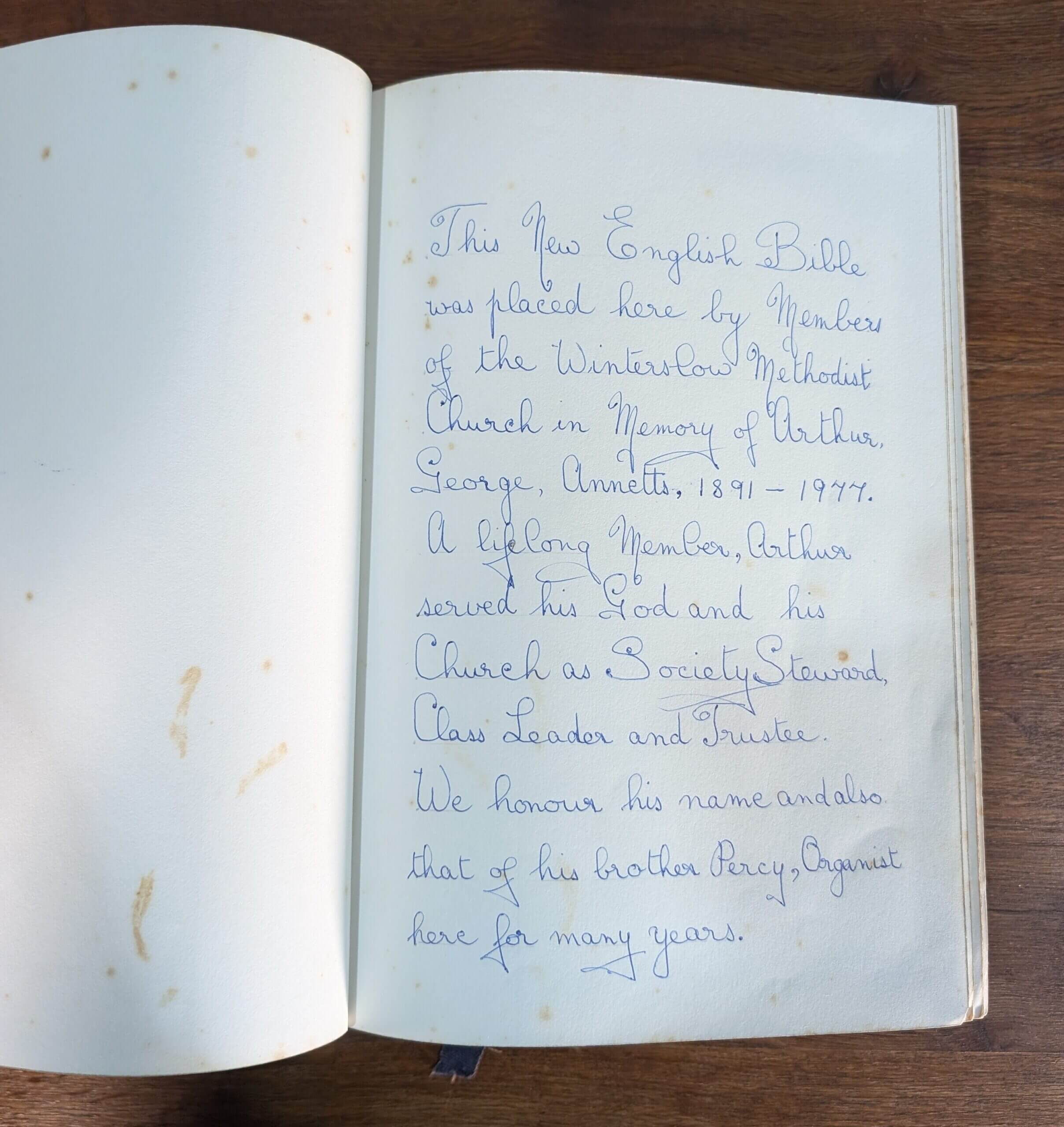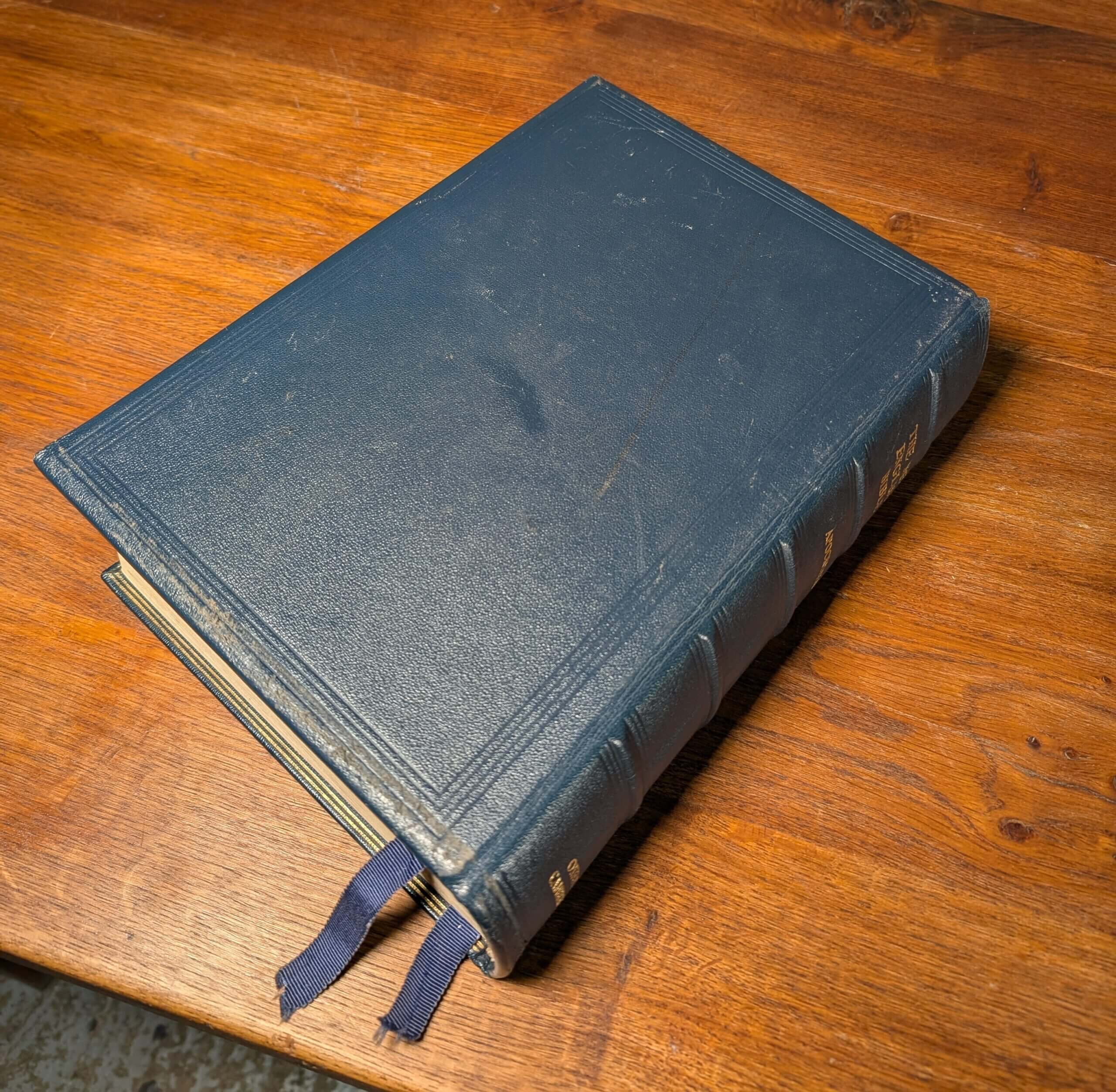 Our product shown on this page 1970’s Vintage Classic Navy Morocco Leather Bound Church Lectern Bible is currently available for hire.