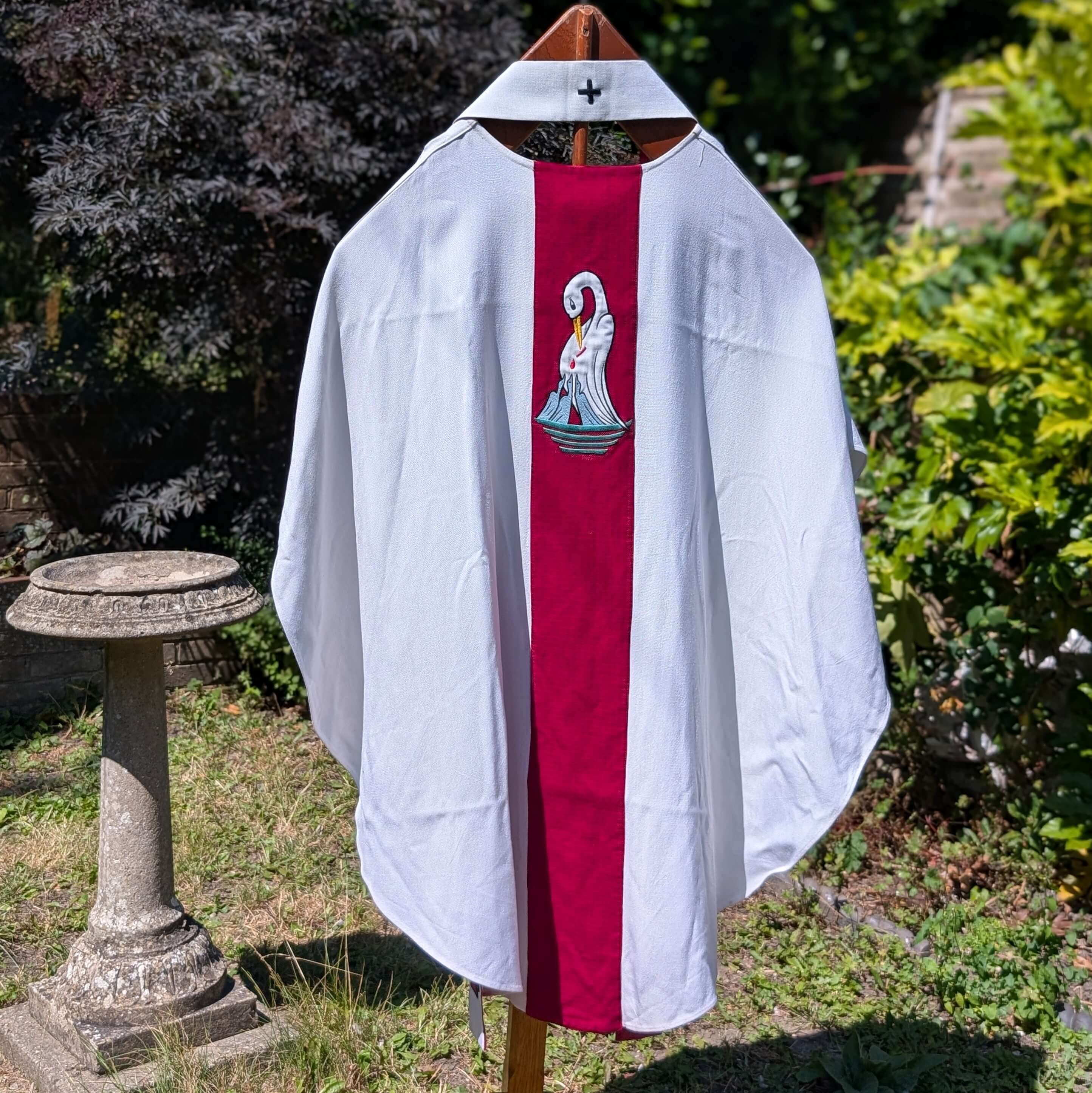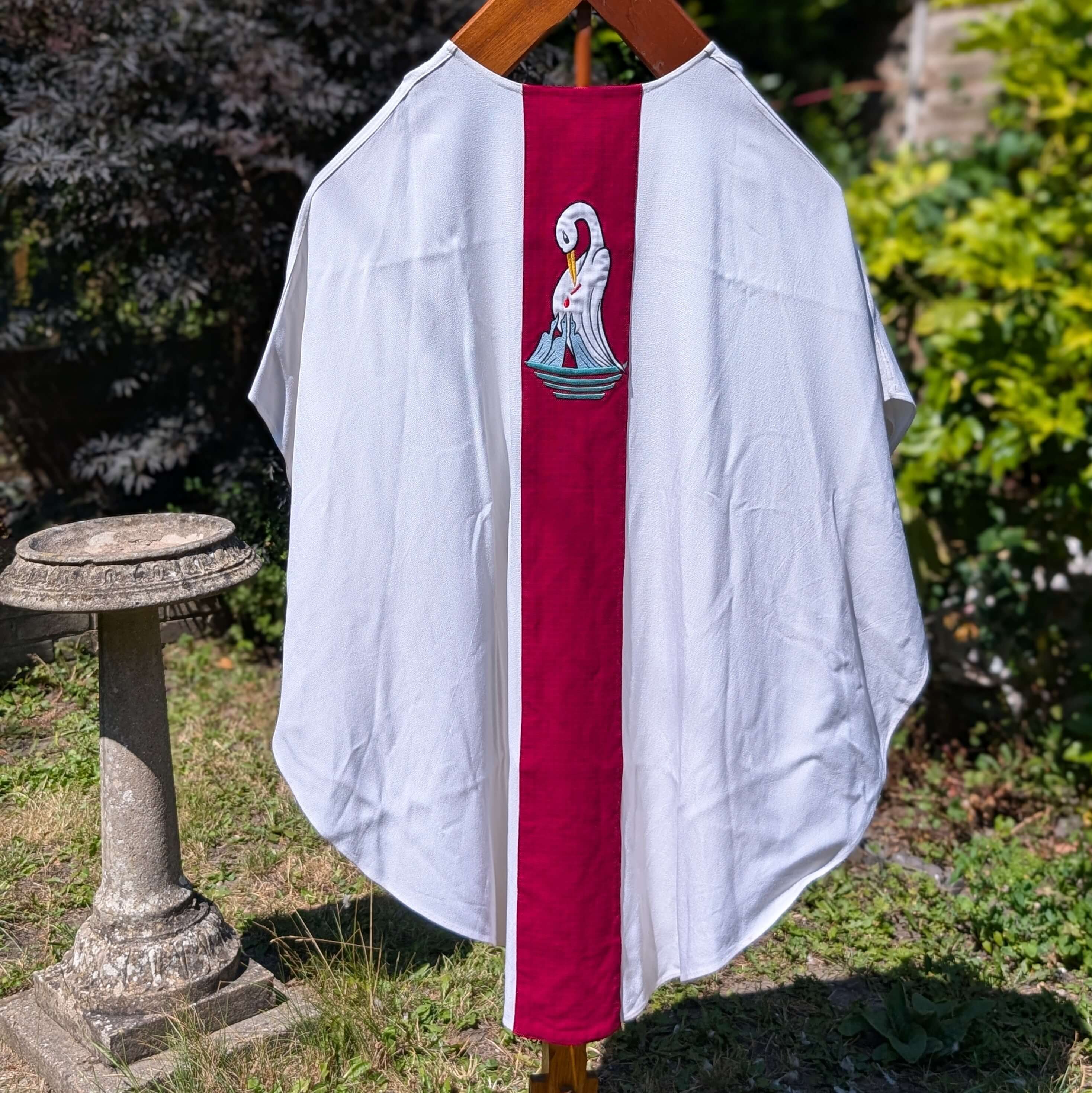 Our product shown on this page 1970’s Vintage Pelican Chasuble with Stole is currently available for hire.