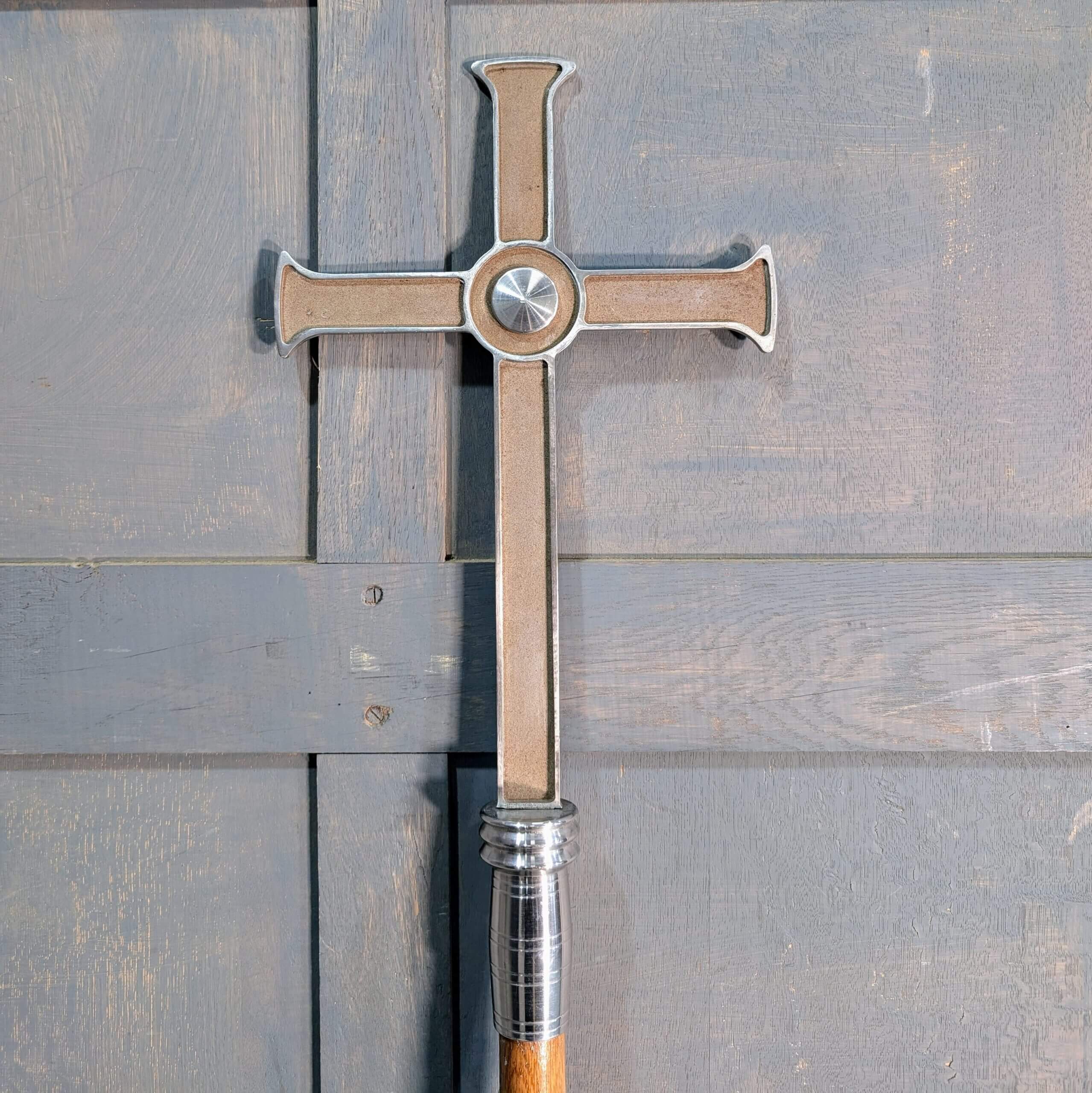 Our product shown on this page 1970’s Vintage Post Modern Steel, Dural and Oak Processional Cross from Swansea (SOLD) is currently available for hire.