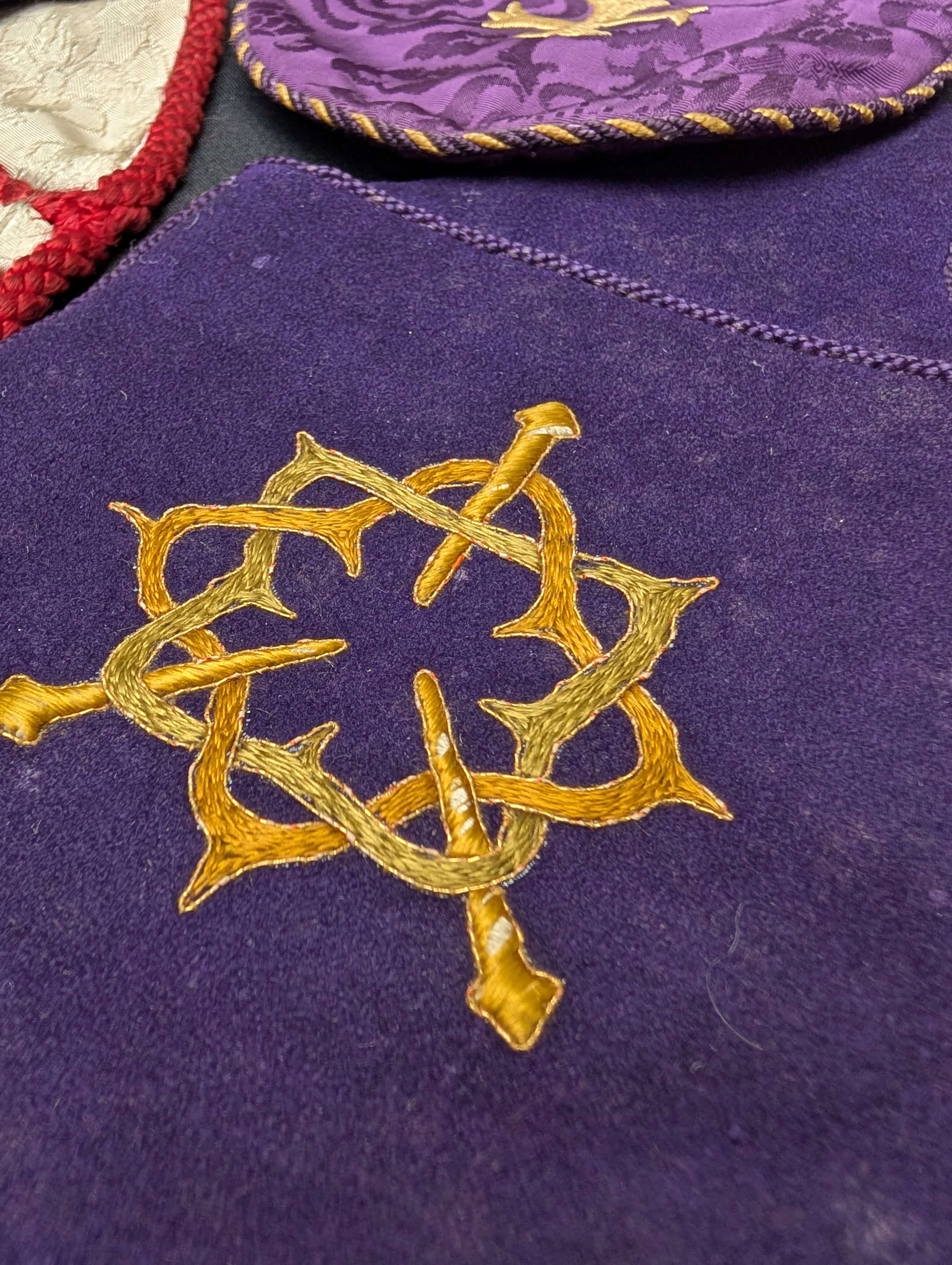 Our product shown on this page 5 Assorted Embroidered Vintage Church Collection Bags is currently available for hire.