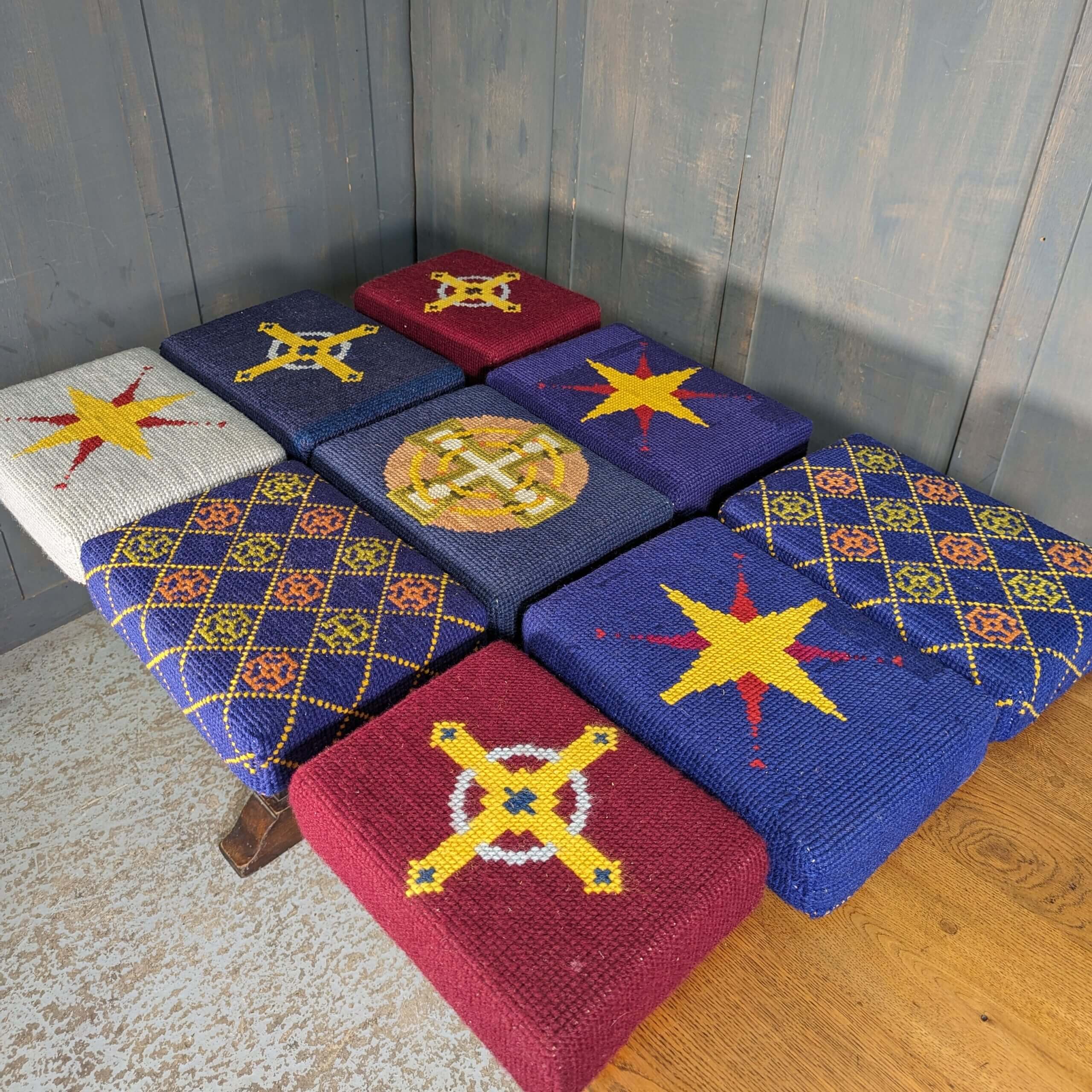 Our product shown on this page 9 Embroidered Colourful Church Kneelers Hassocks Cushions from St Mary’s Northop Hall (SOLD) is currently available for hire.
