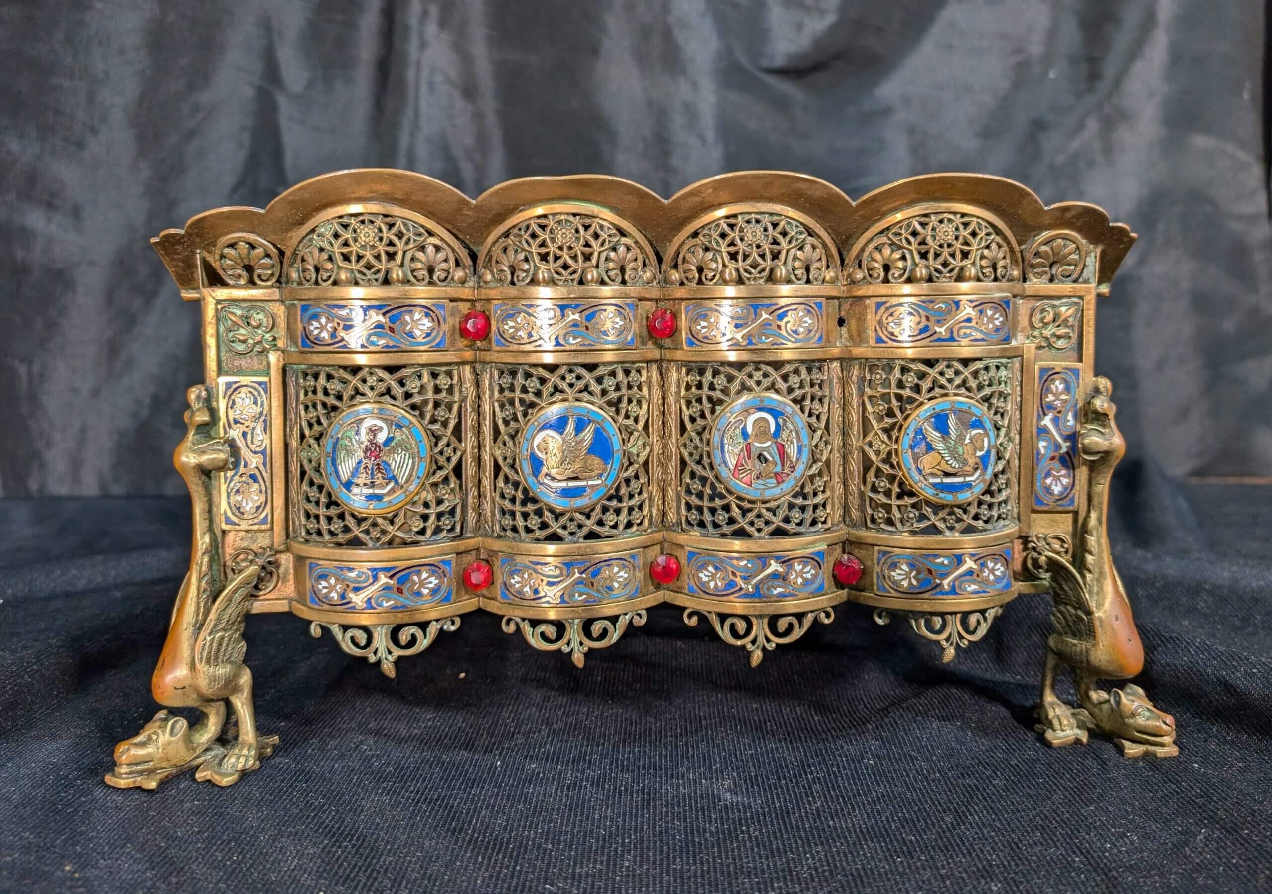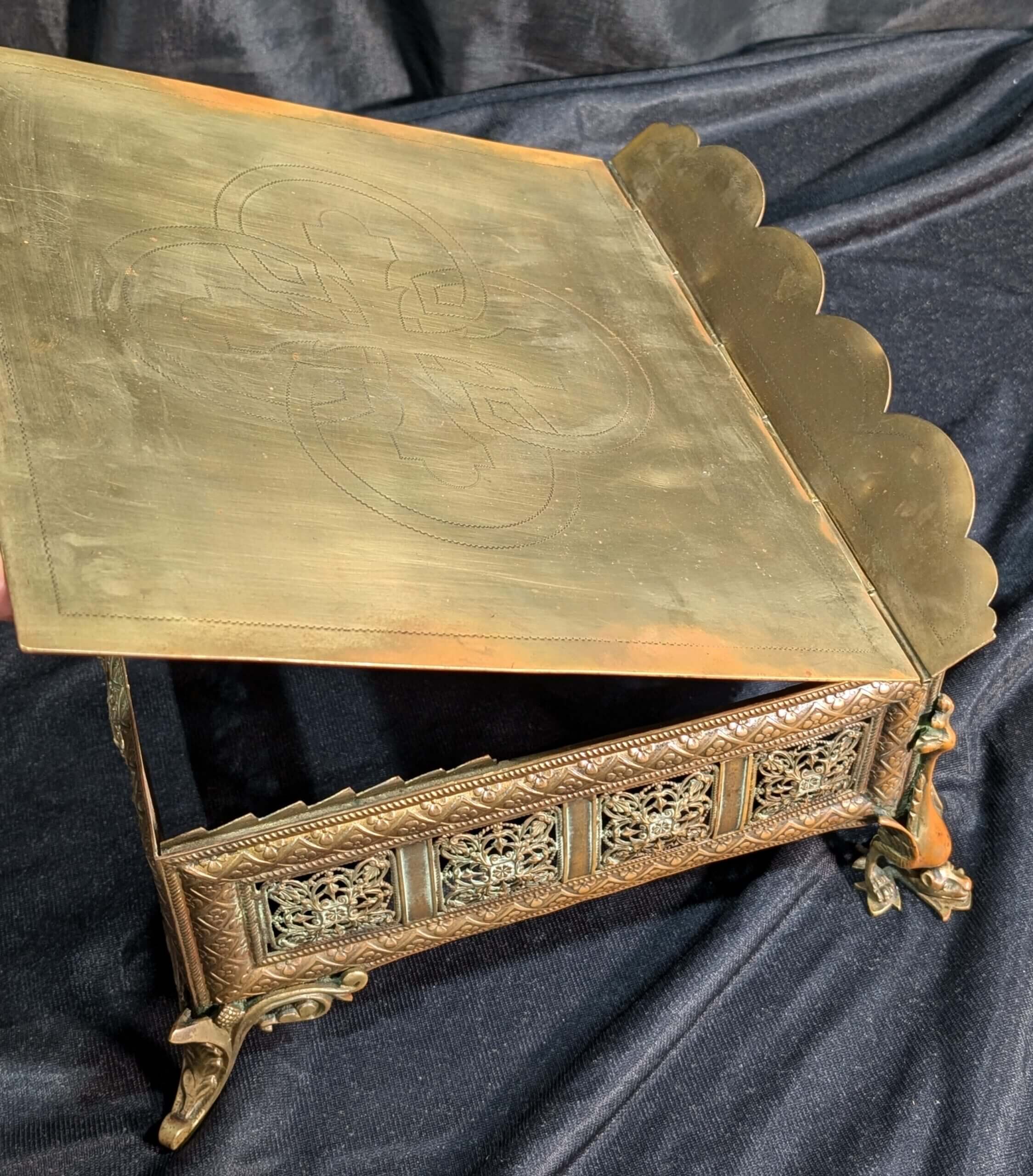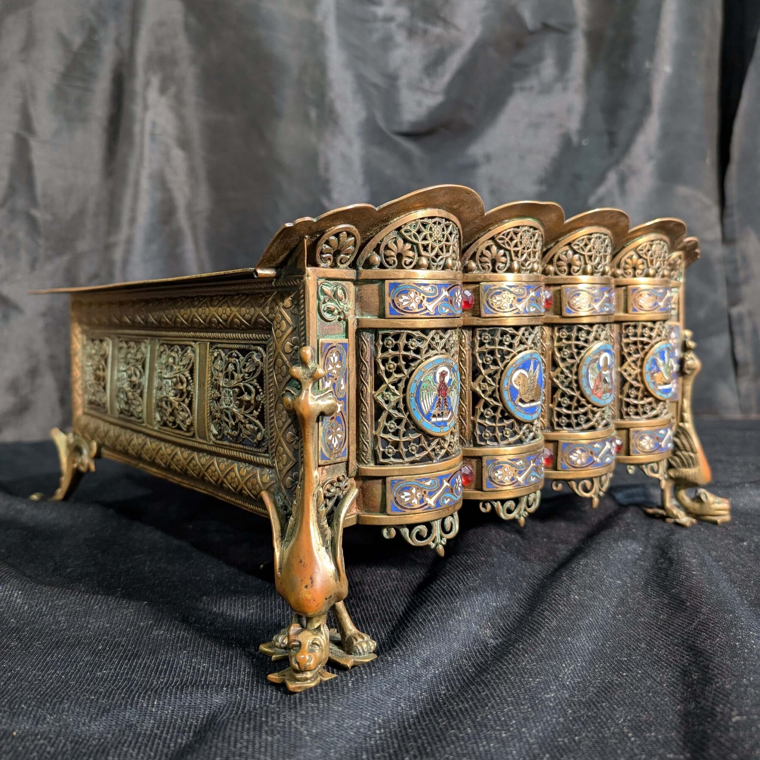 Our product shown on this page A Fantastic 19th Century Brass and Enamelled Table Lectern with Cloisonne Medallions and Griffins (SOLD) is currently available for hire.