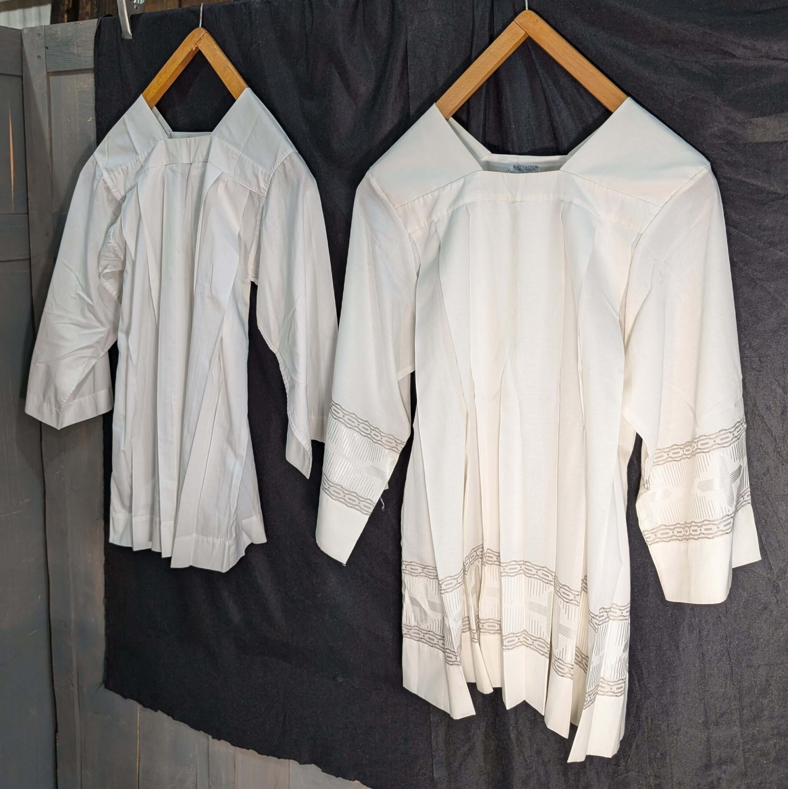Our product shown on this page A Gathered Cotta Sized 81cm and a Silver Orphreyed Surplice, 86 cm both by Watts & Co (SOLD) is currently available for hire.
