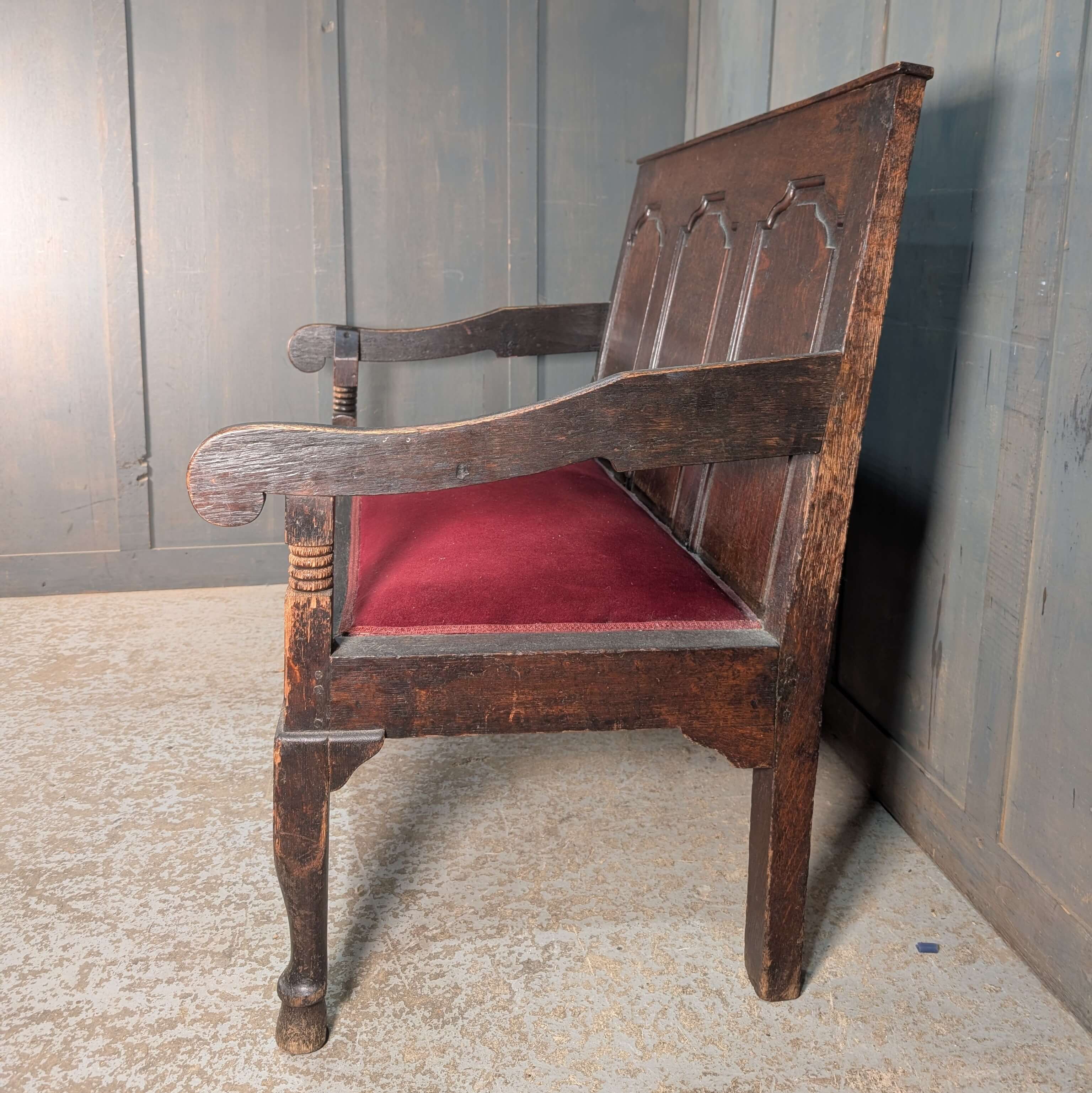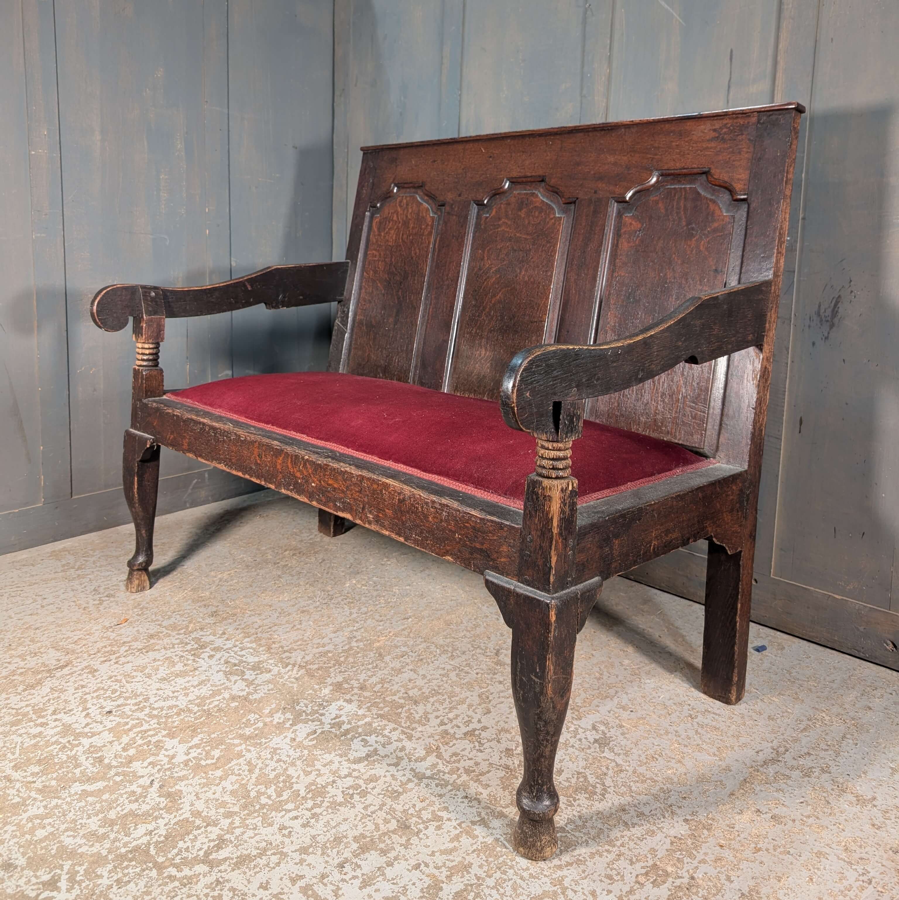 Our product shown on this page A Small George III Panelled Oak Settle with Upholstered Seat is currently available for hire.