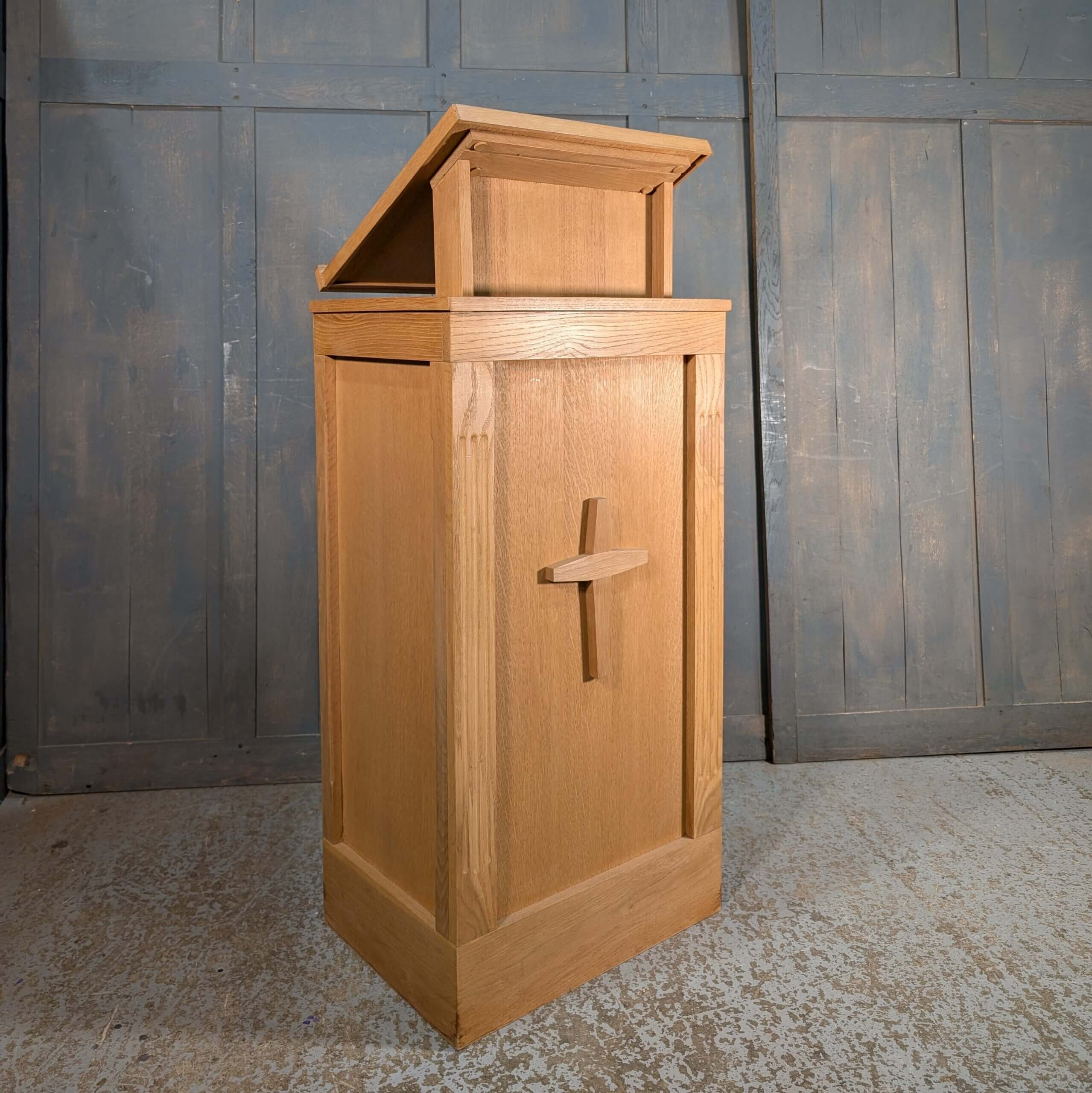 Our product shown on this page Adjustable Ambo Pale Oak Pulpit Like Lectern from St Joseph’s Convent East Molesey (SOLD) is currently available for hire.