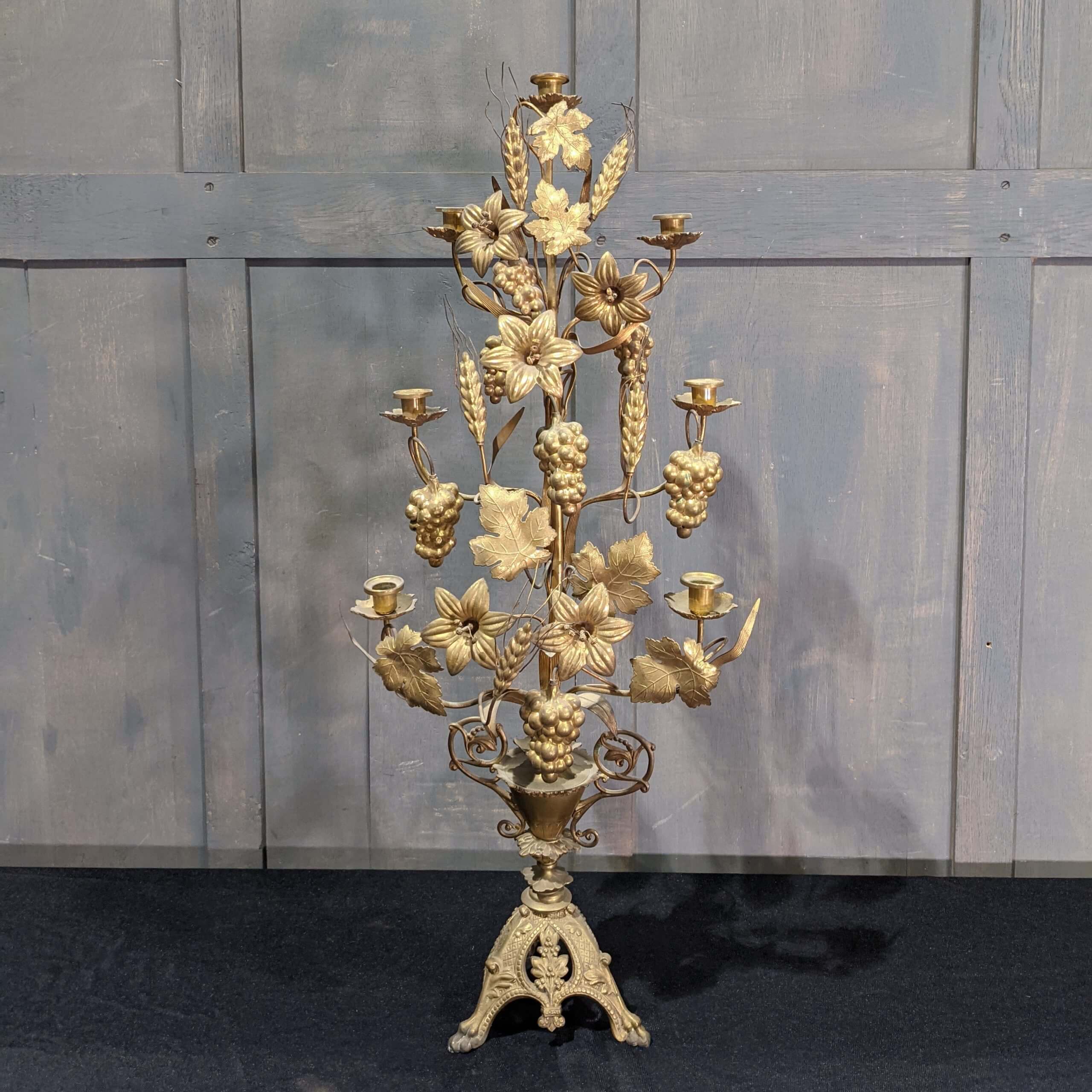 Our product shown on this page Amazing Antique Brass Belgian Lily Wheat & Daffodil Seven Branch Table Candelabra (SOLD) is currently available for hire.