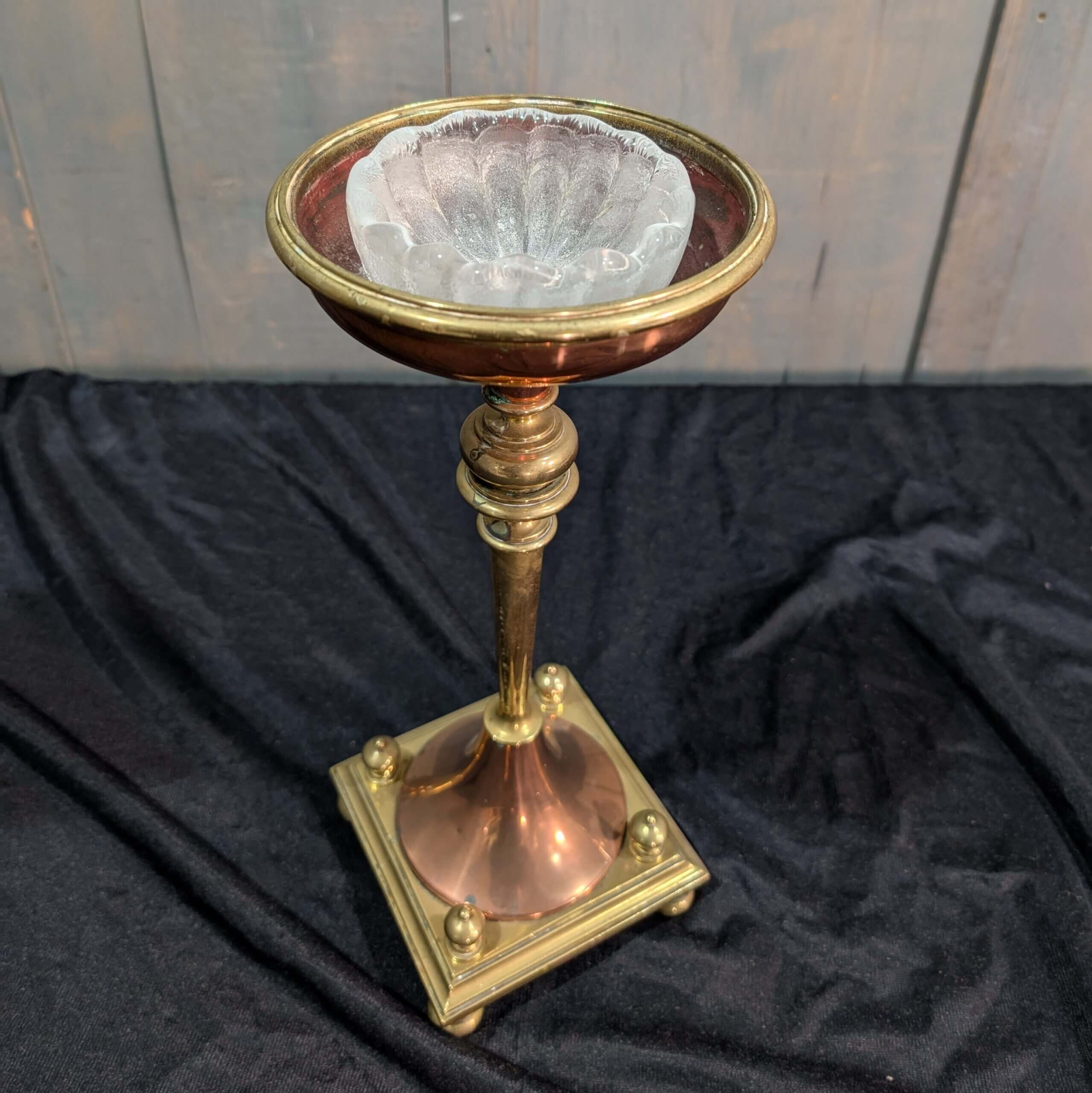 Our product shown on this page Antique Copper and Brass Holy Water Stand Holder with Bowl Vat (SOLD) is currently available for hire.