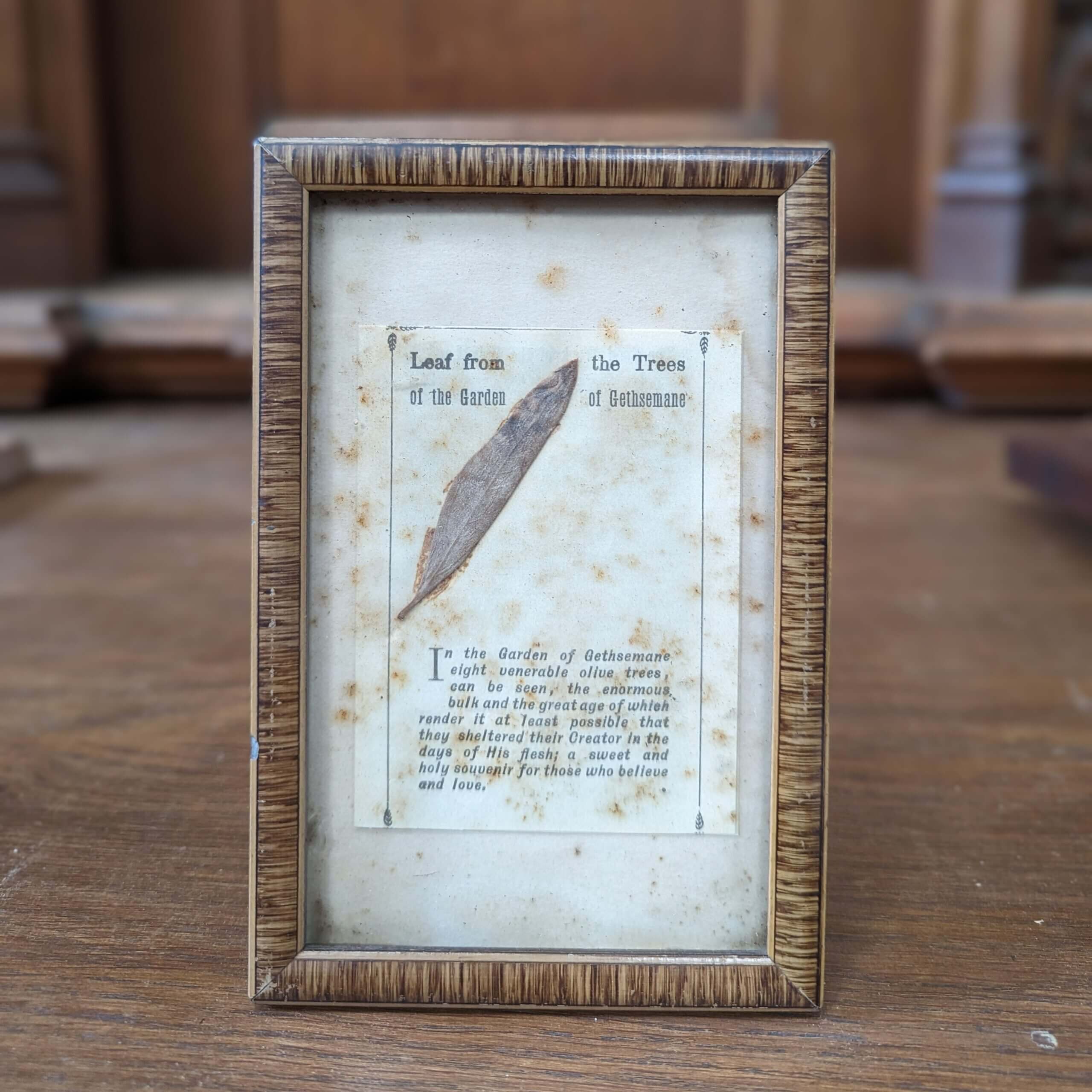 Antique Framed Olive Leaf Souvenir from Jerusalem (SOLD)