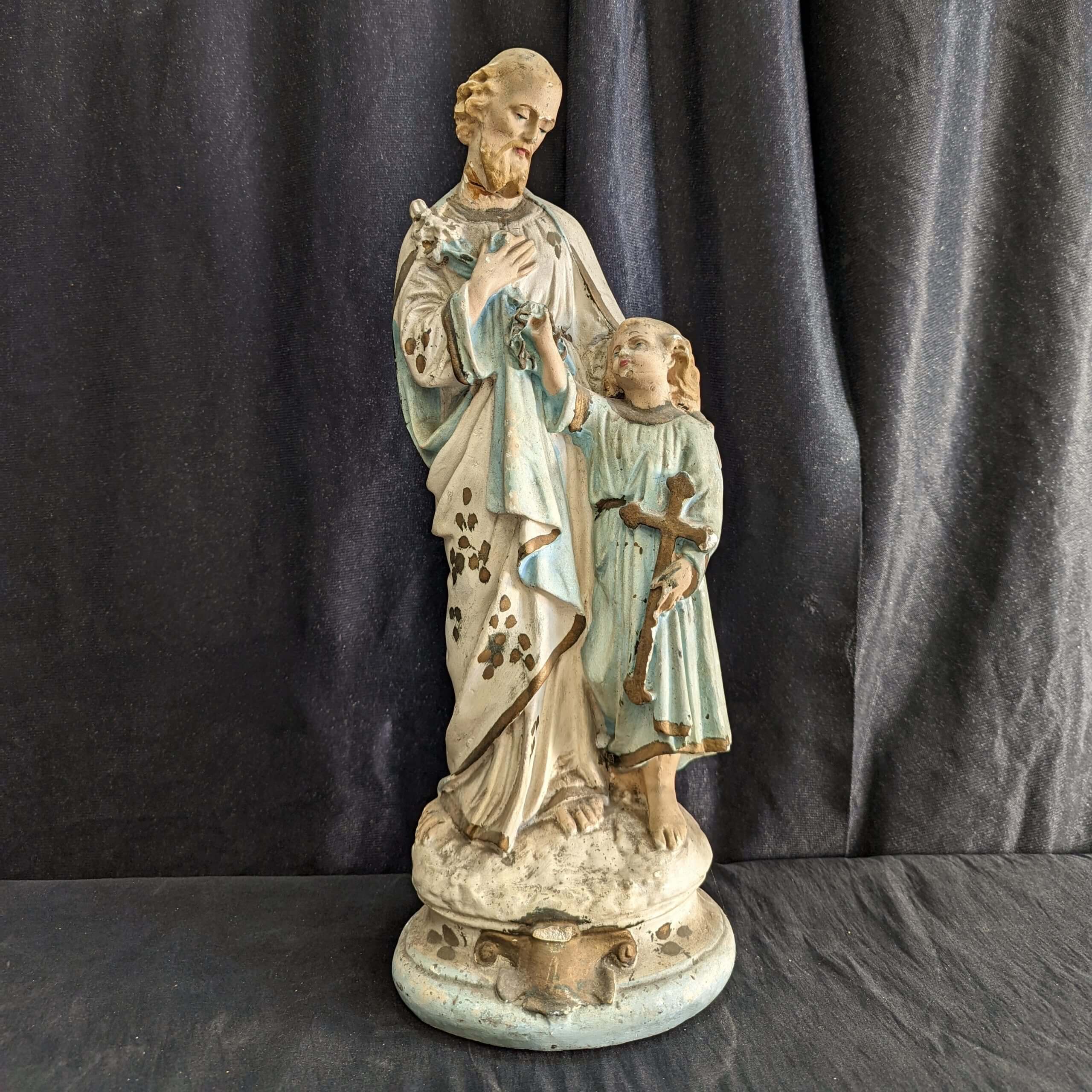 Antique French Religious Statue of St Joseph & the Boy Jesus (SOLD)
