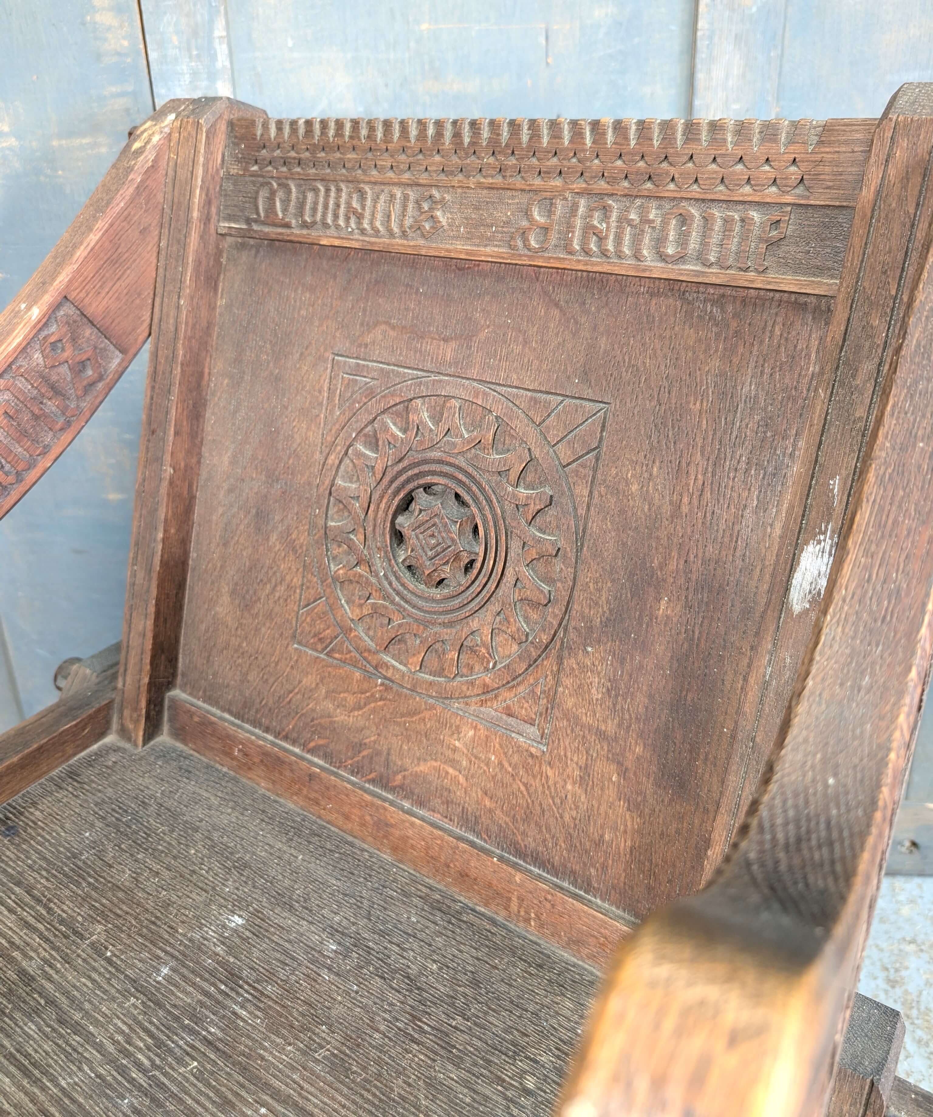 Our product shown on this page Antique Oak Carved Latin Inscribed Glastonbury Clergy Chair is currently available for hire.