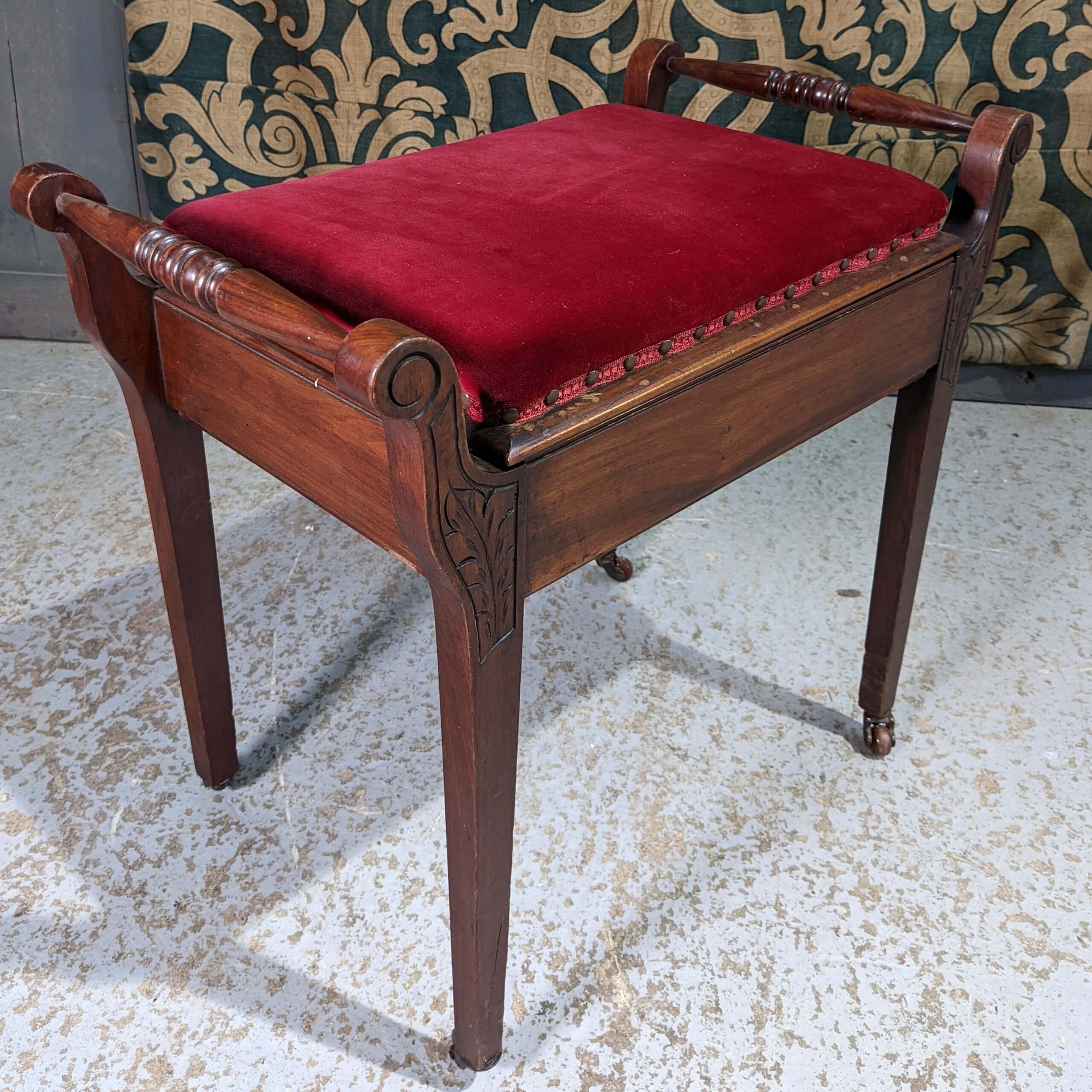 Our product shown on this page Antique Rich Dark Mahogany Victorian Piano Stool on Wheels (SOLD) is currently available for hire.