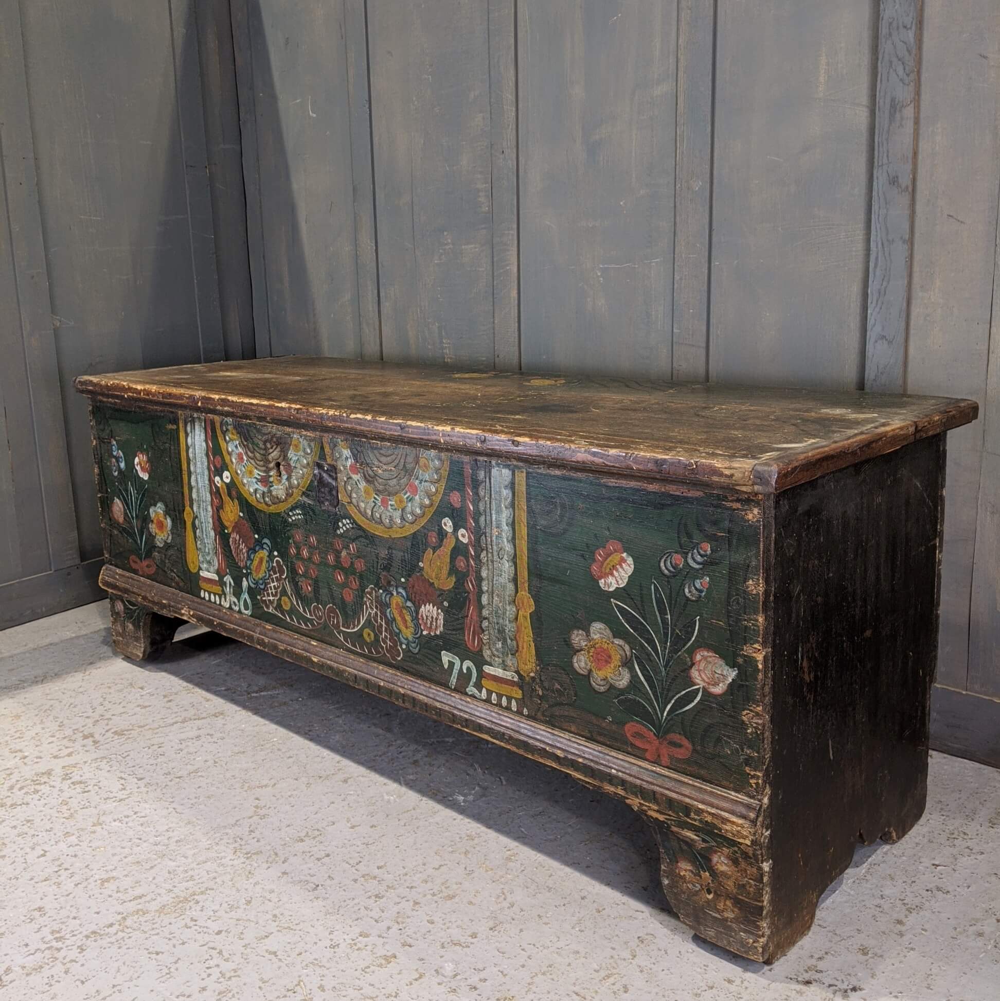 Our product shown on this page Antique Rustic Handpainted Austro-Hungarian Pine Dowry Chest (SOLD) is currently available for hire.