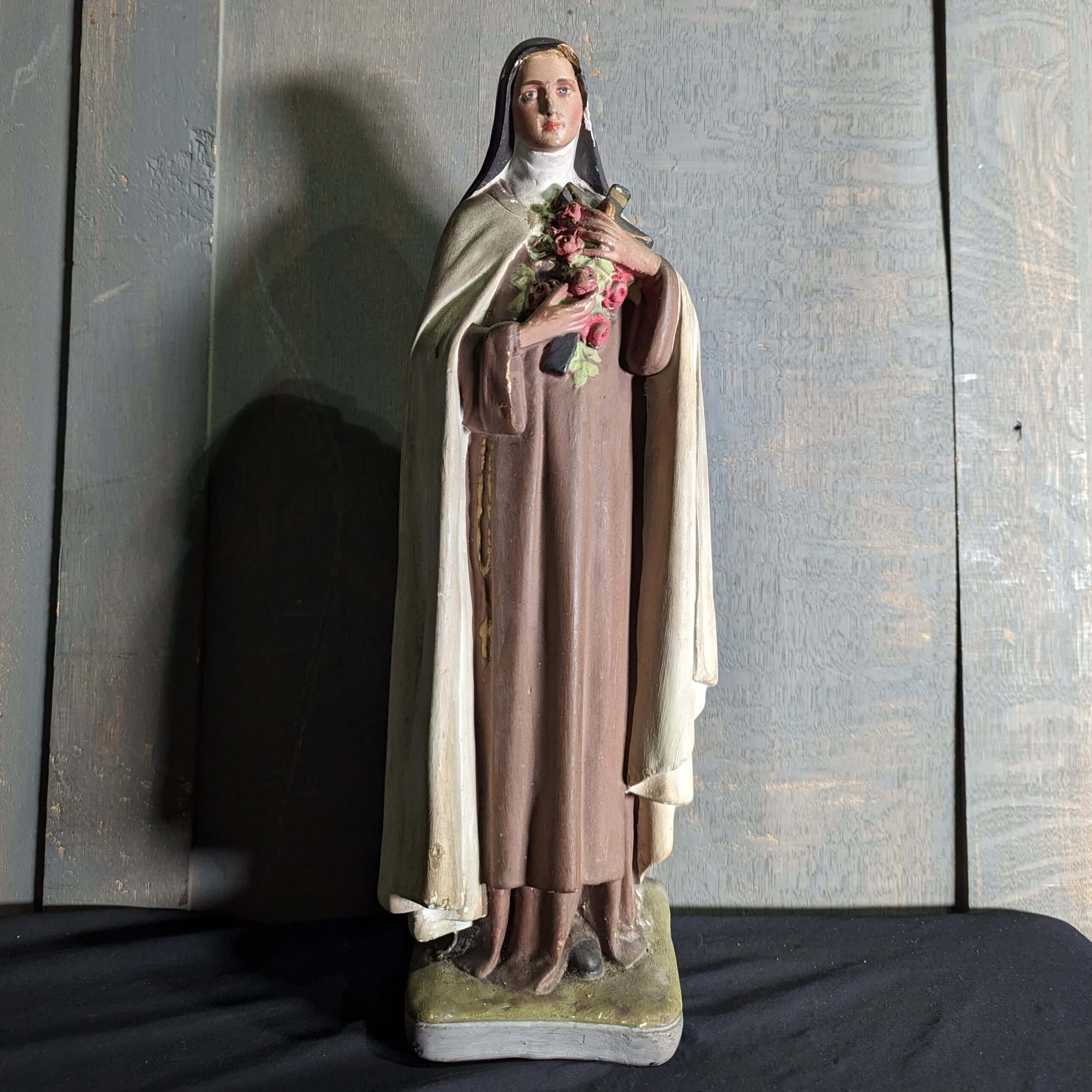 Our product shown on this page Antique Small to Medium Relgious Statue of St Terese ‘The Little Flower’ (SOLD) is currently available for hire.