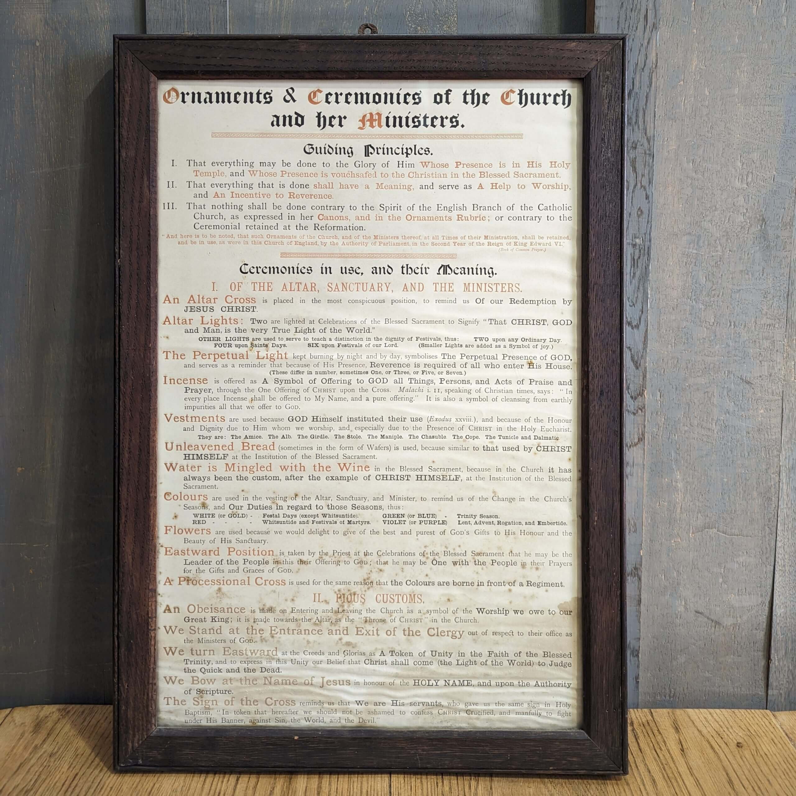 Our product shown on this page Antique Victorian High Anglo Catholic Framed Guide to Church Business (SOLD) is currently available for hire.