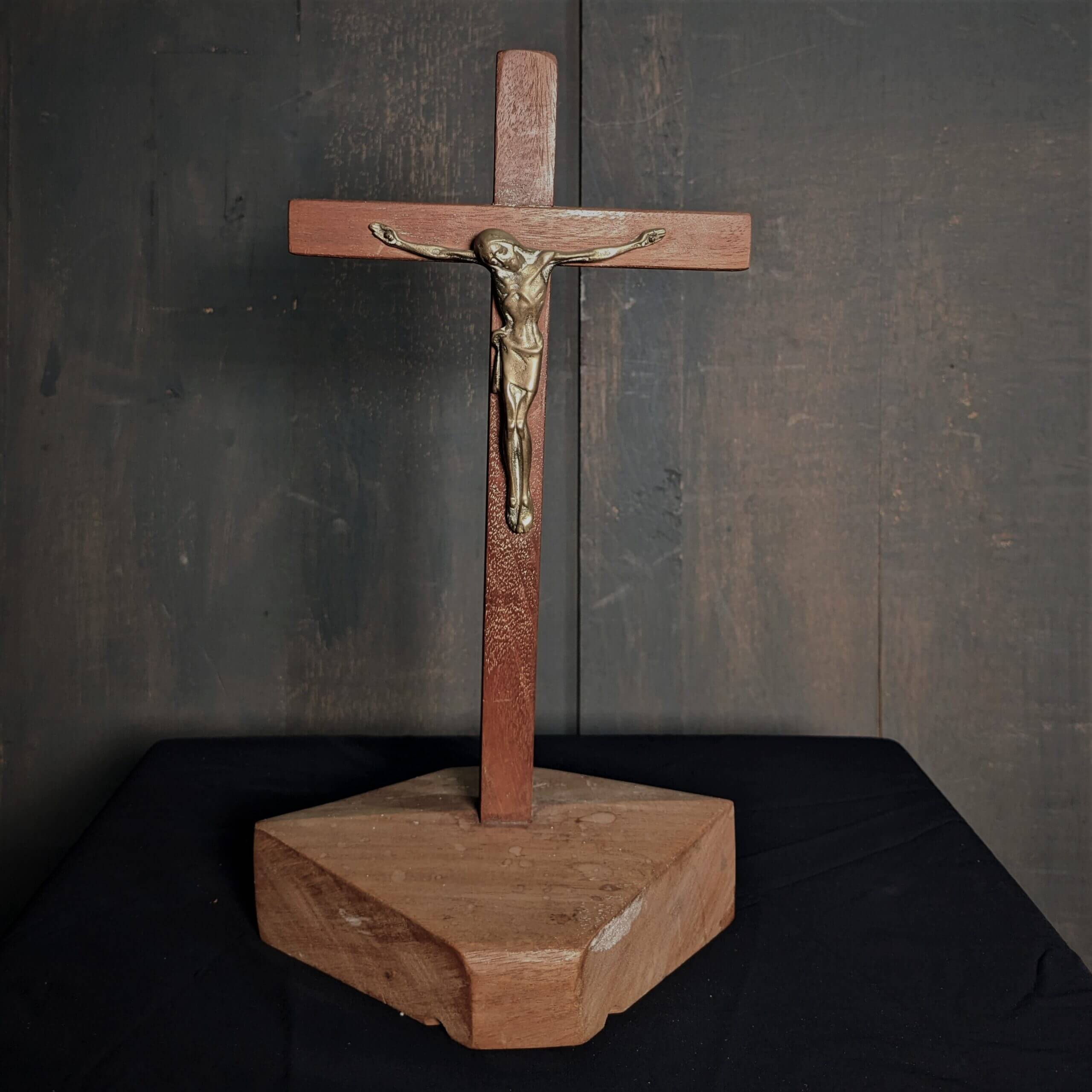 Our product shown on this page Ascetic Bronze Mid Century Crucifix atop a Rock like Slab of Teak (SOLD) is currently available for hire.