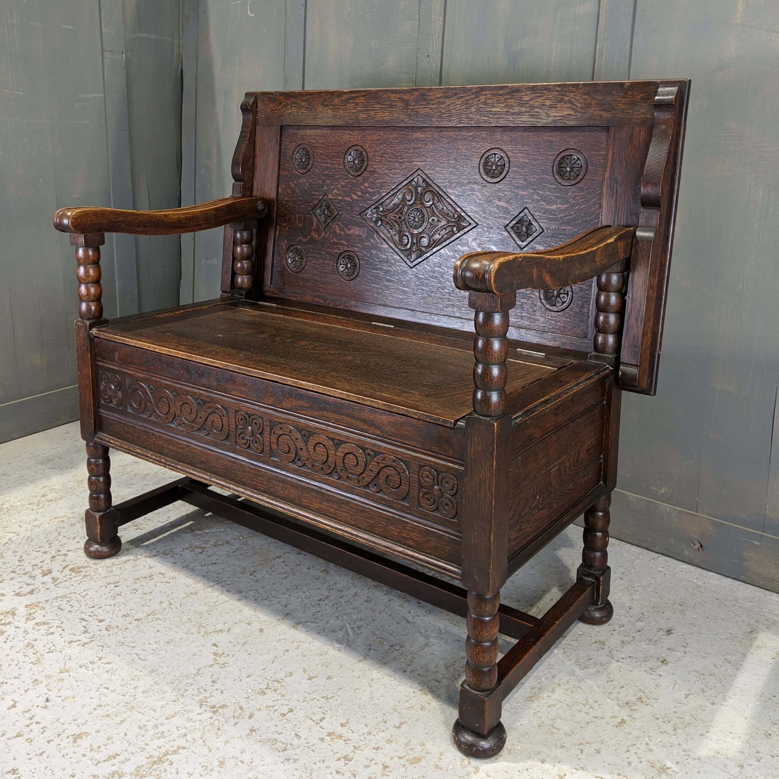 Our product shown on this page Attractive Medium to Dark Oak Monks Bench with Bobbin Legs (SOLD) is currently available for hire.