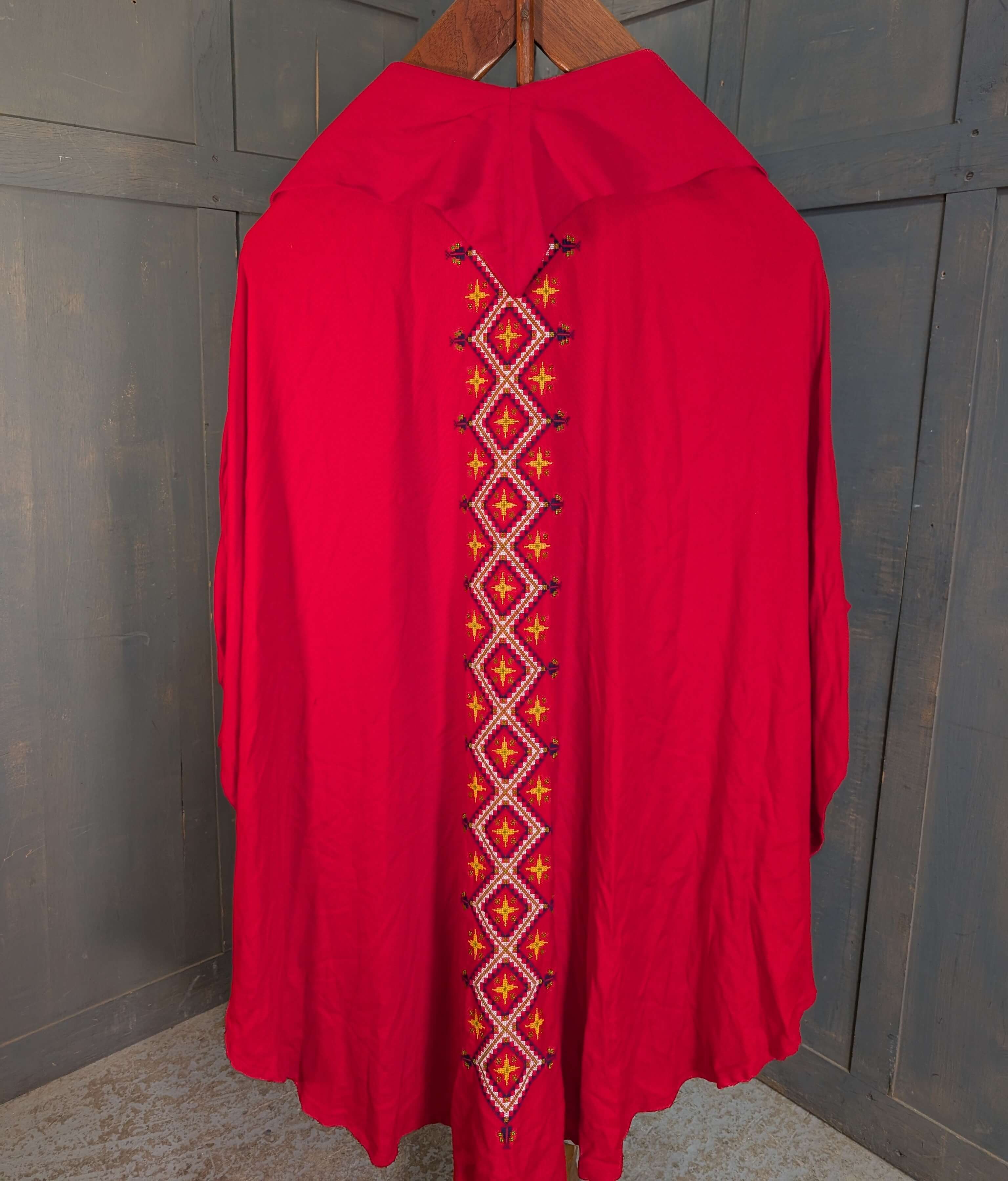 Our product shown on this page Bethlehem Made Embroidered Red Cotton Chasuble with Stole is currently available for hire.