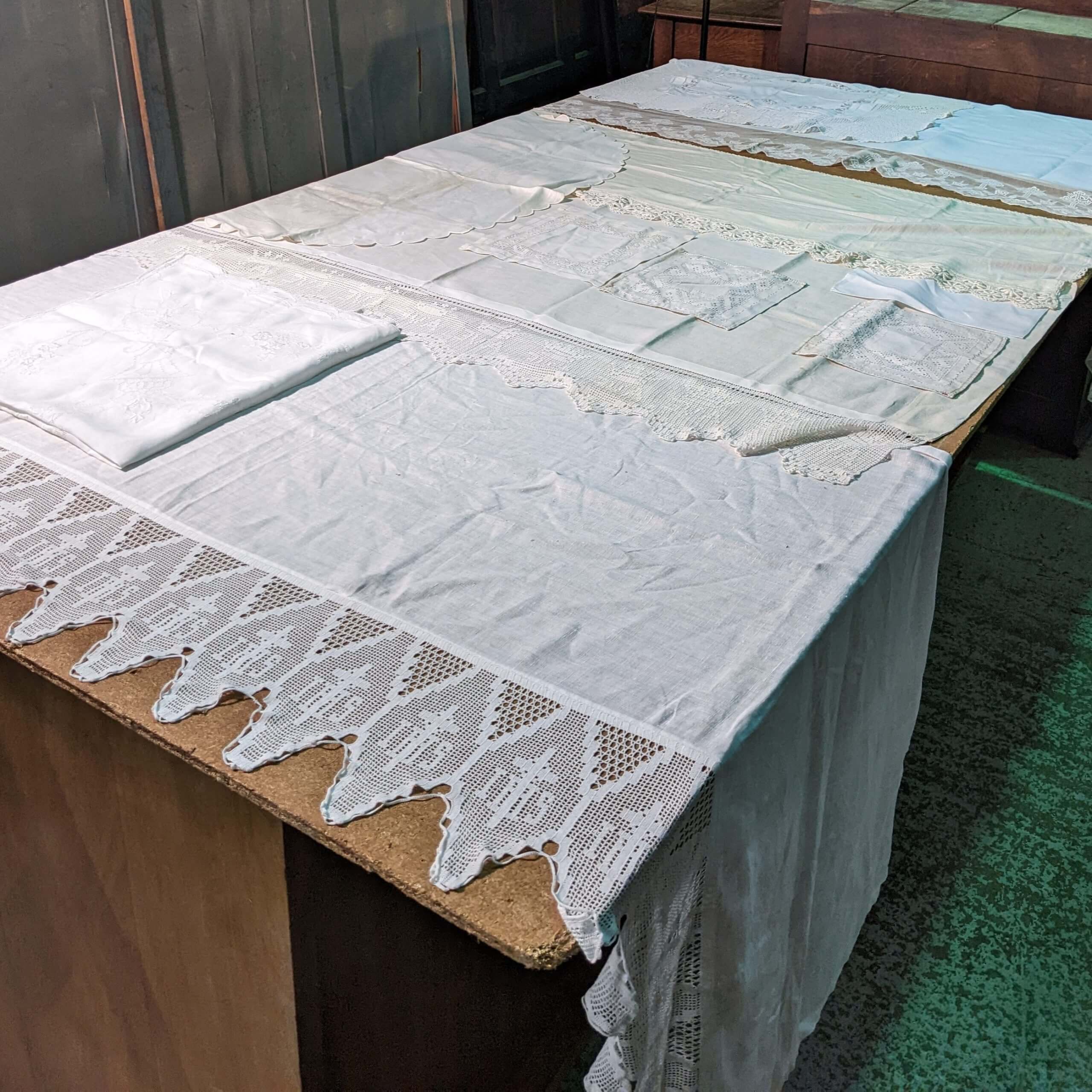 Our product shown on this page Big Bumper Pack of Altar Cloths Frontals & White Cotton Lacework (SOLD) is currently available for hire.