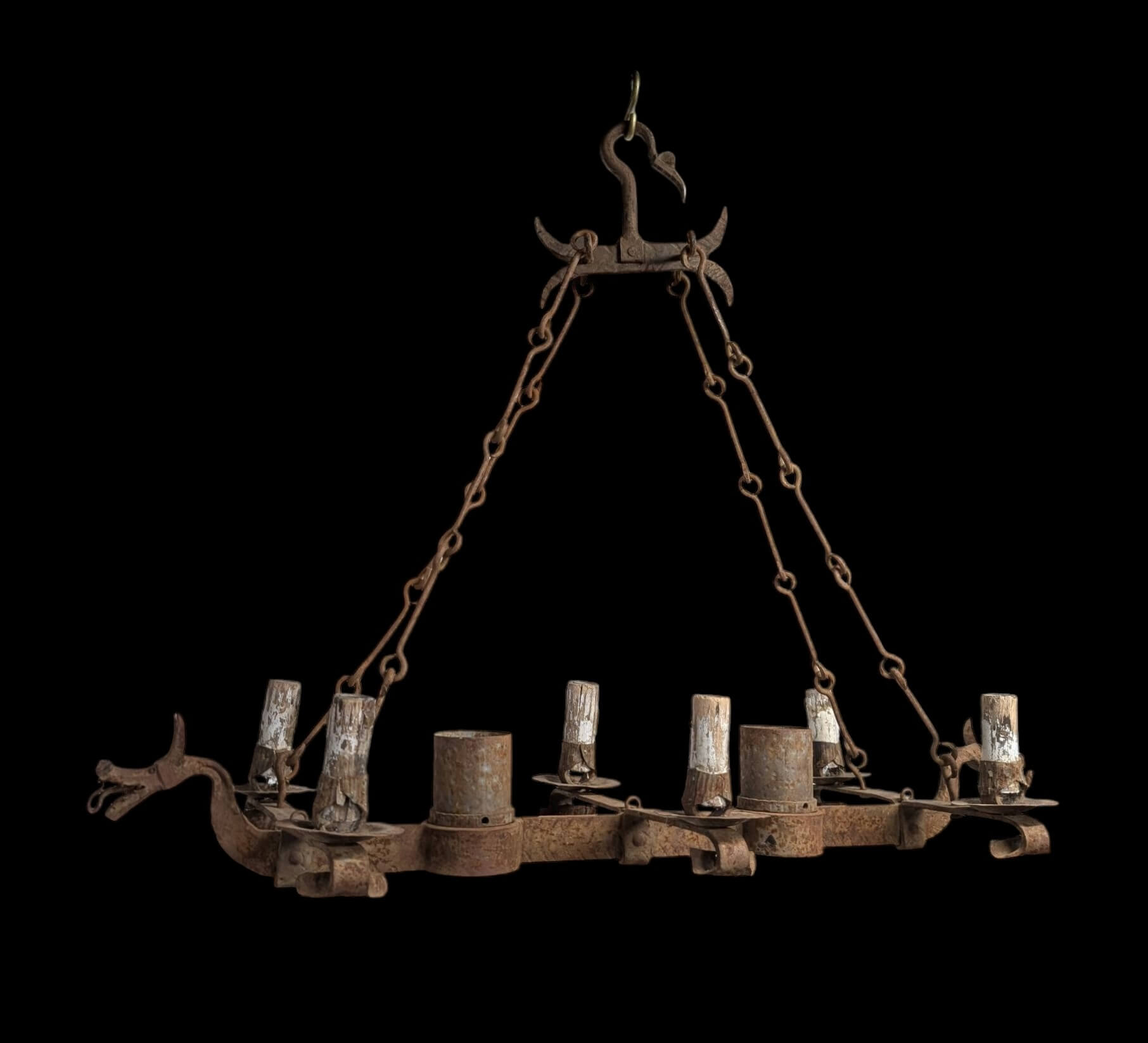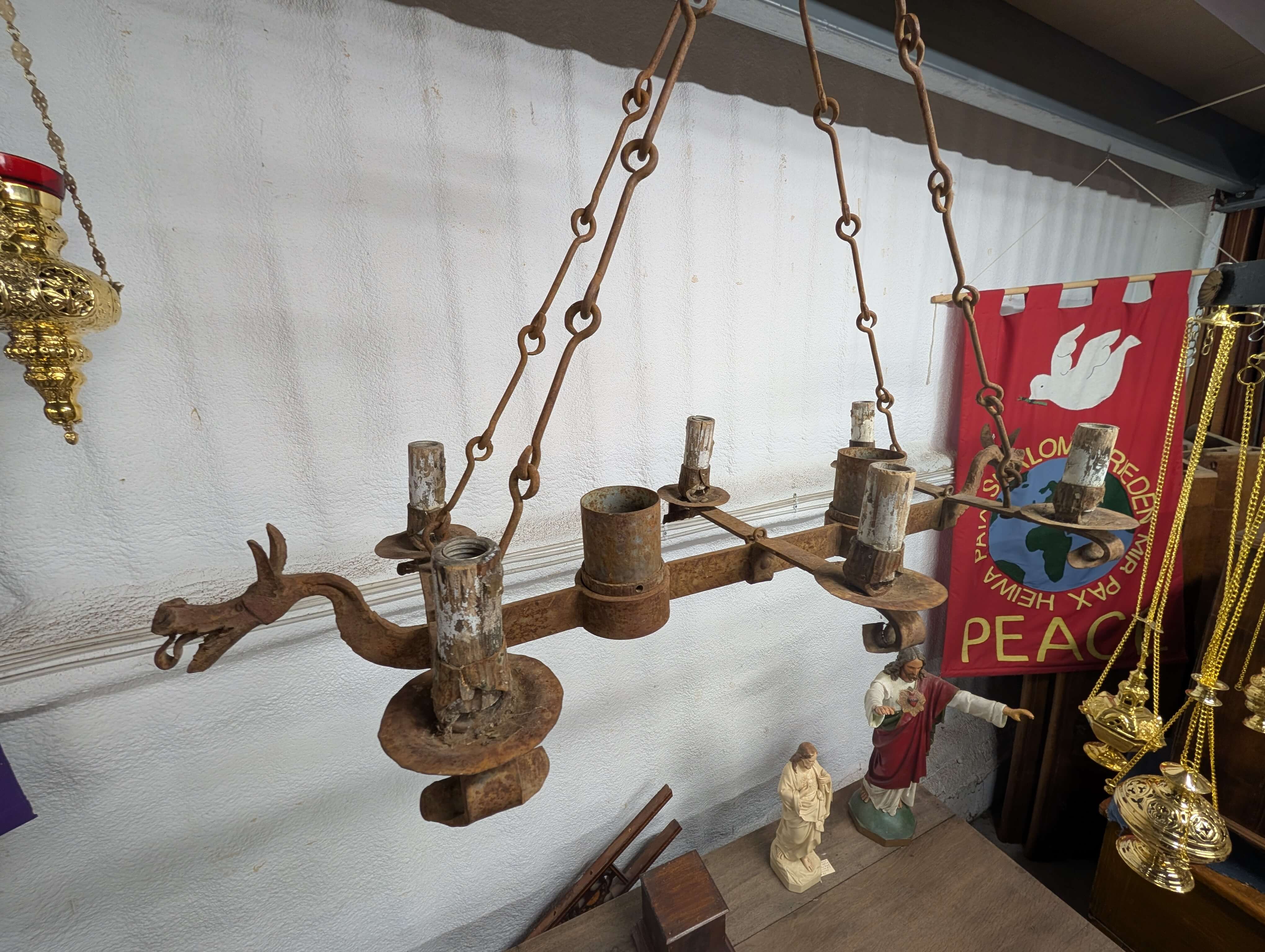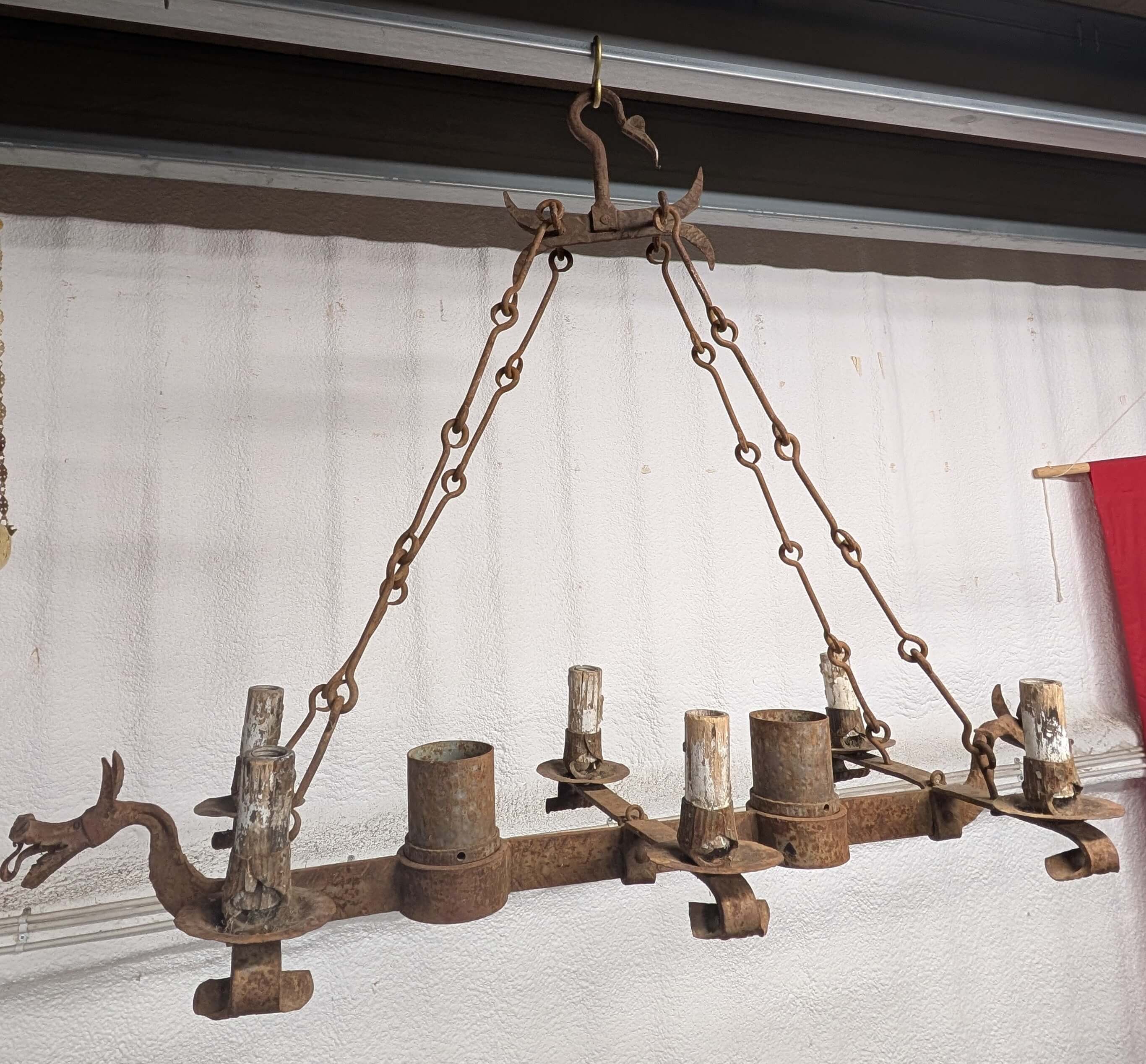 Our product shown on this page Bizarre Heavy Vintage Iron ‘Dragon’ Chandelier RESERVED KS is currently available for hire.