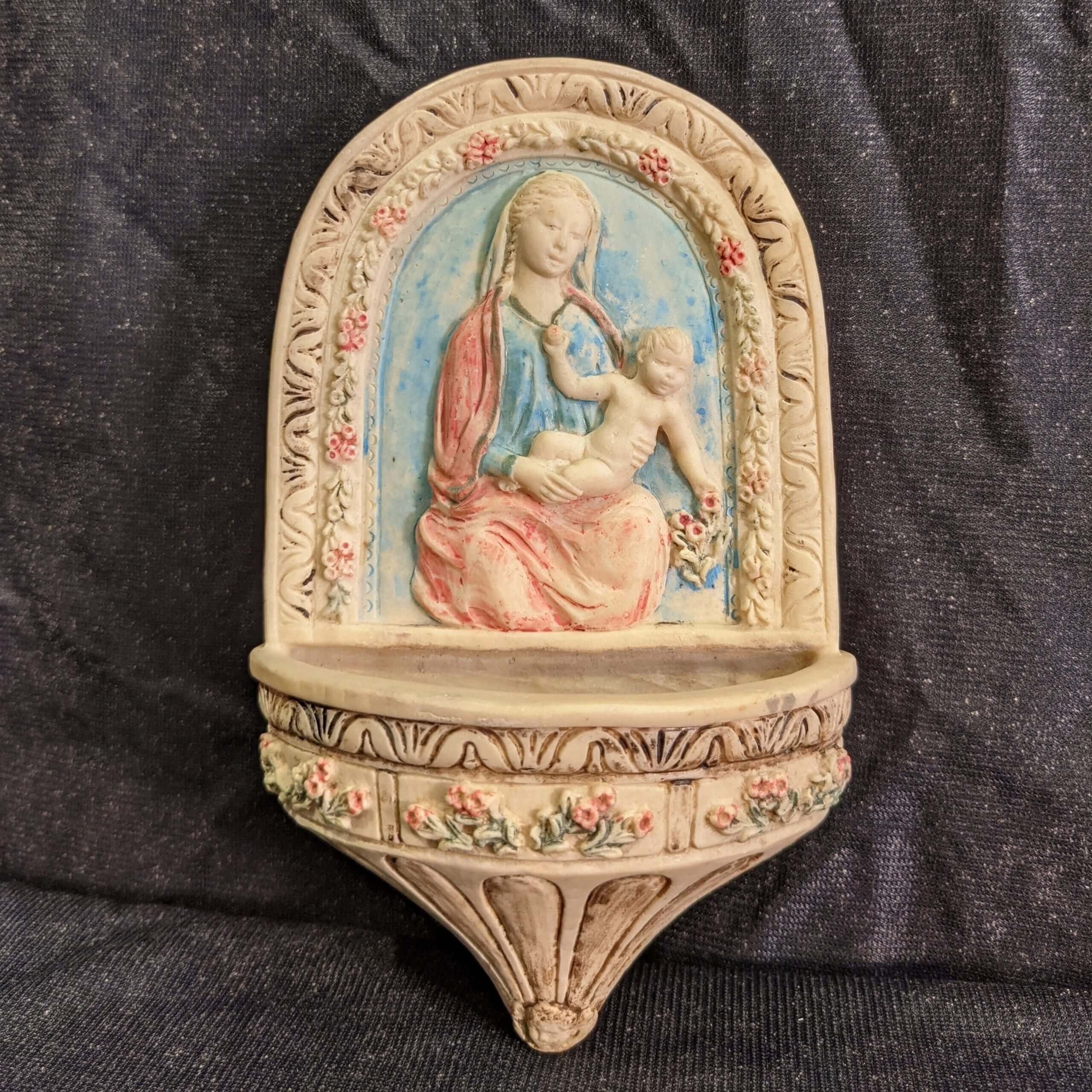 Charming Faux Majolica Della Robbia Style Resin Holy Water Stoop Piscina (SOLD)