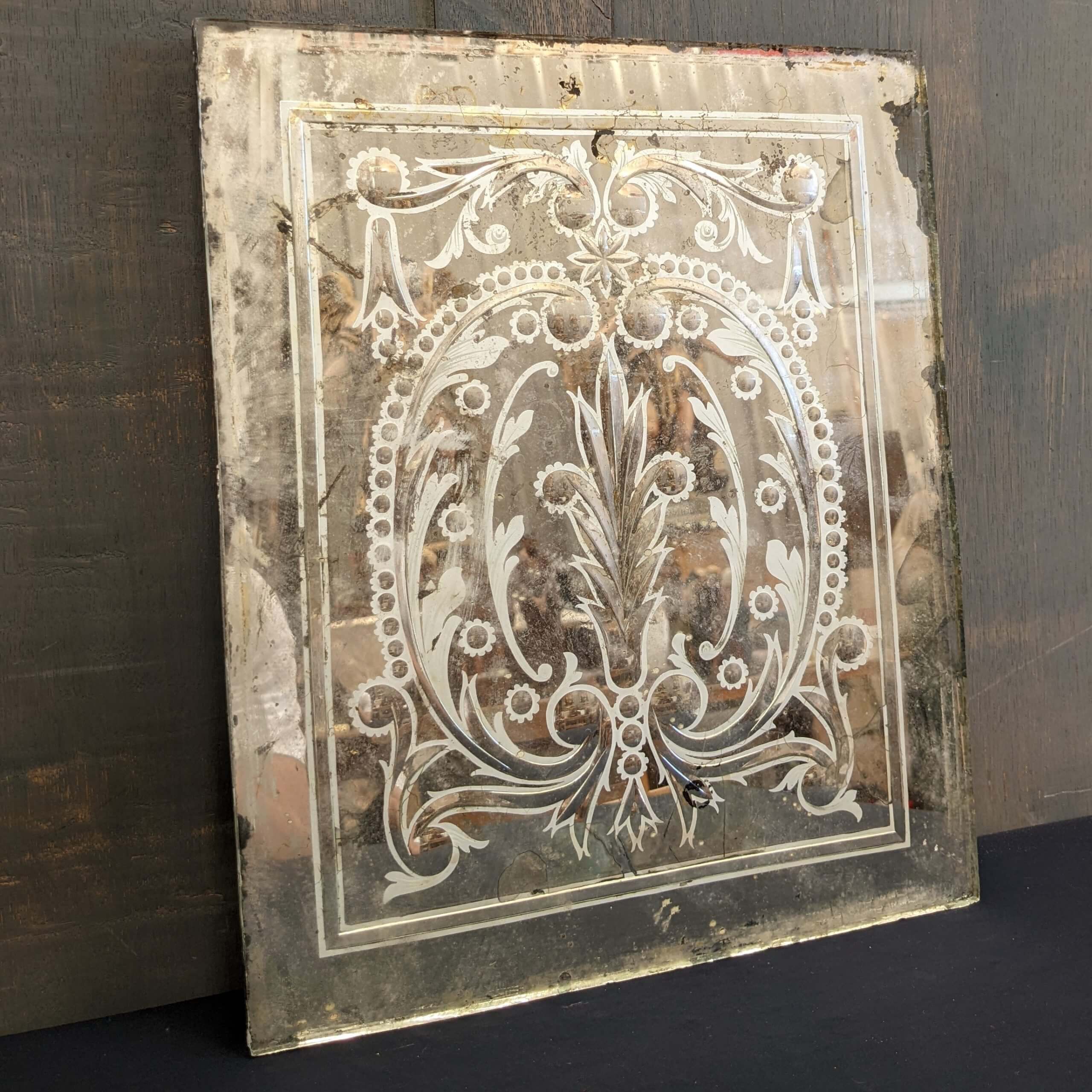 Charming Small Antique Etched Distressed Mirror (SOLD)