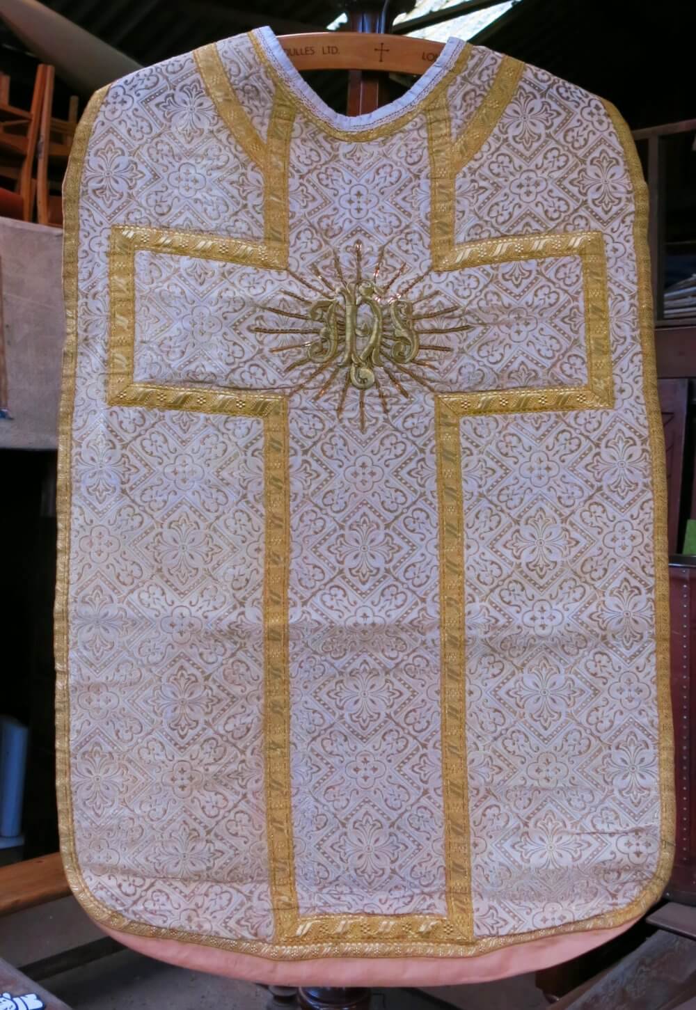 Our product shown on this page Chasuble French Gold Jacquard (SOLD) is currently available for hire.