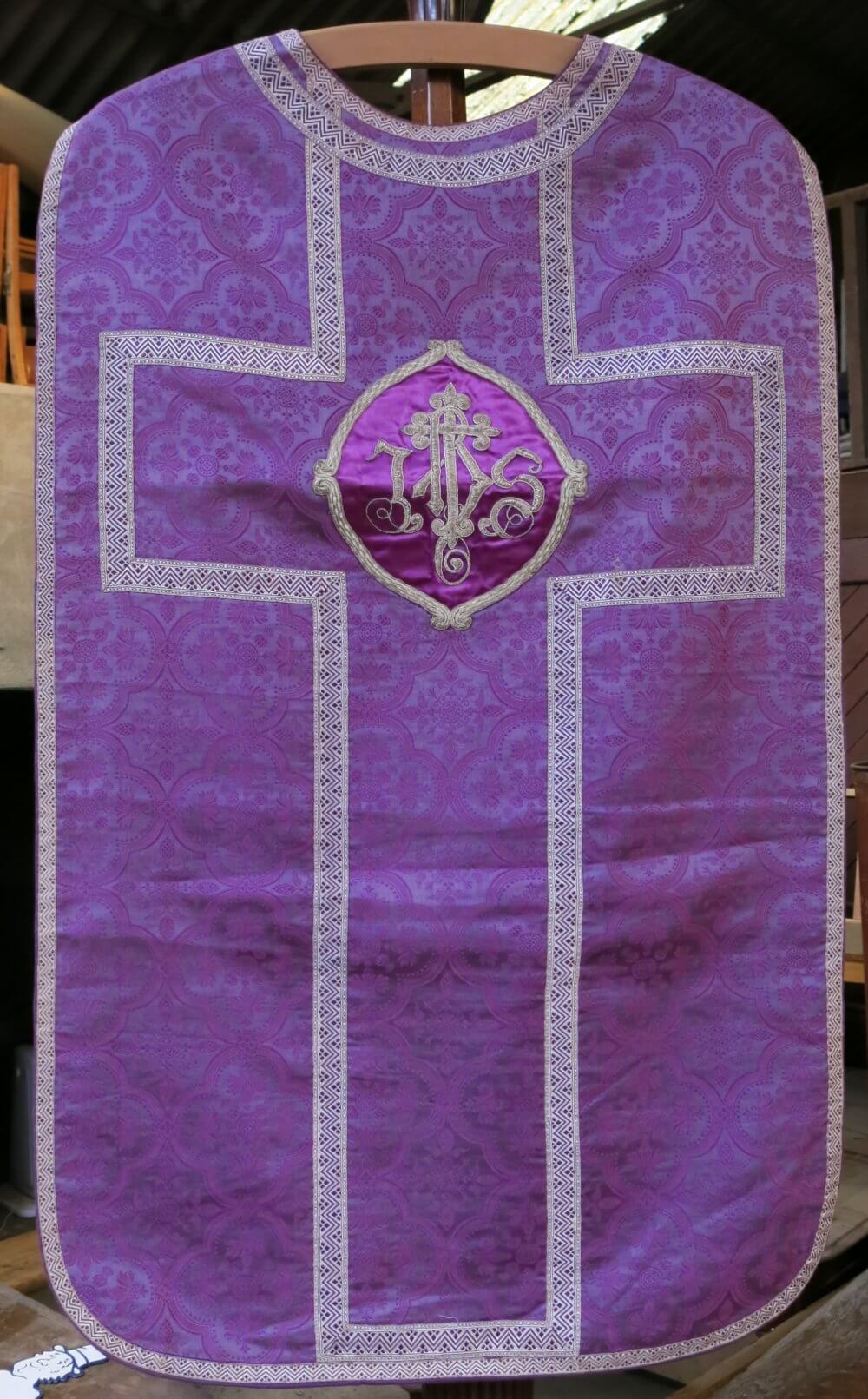 Our product shown on this page Chasuble Purple and Silver (SOLD) is currently available for hire.