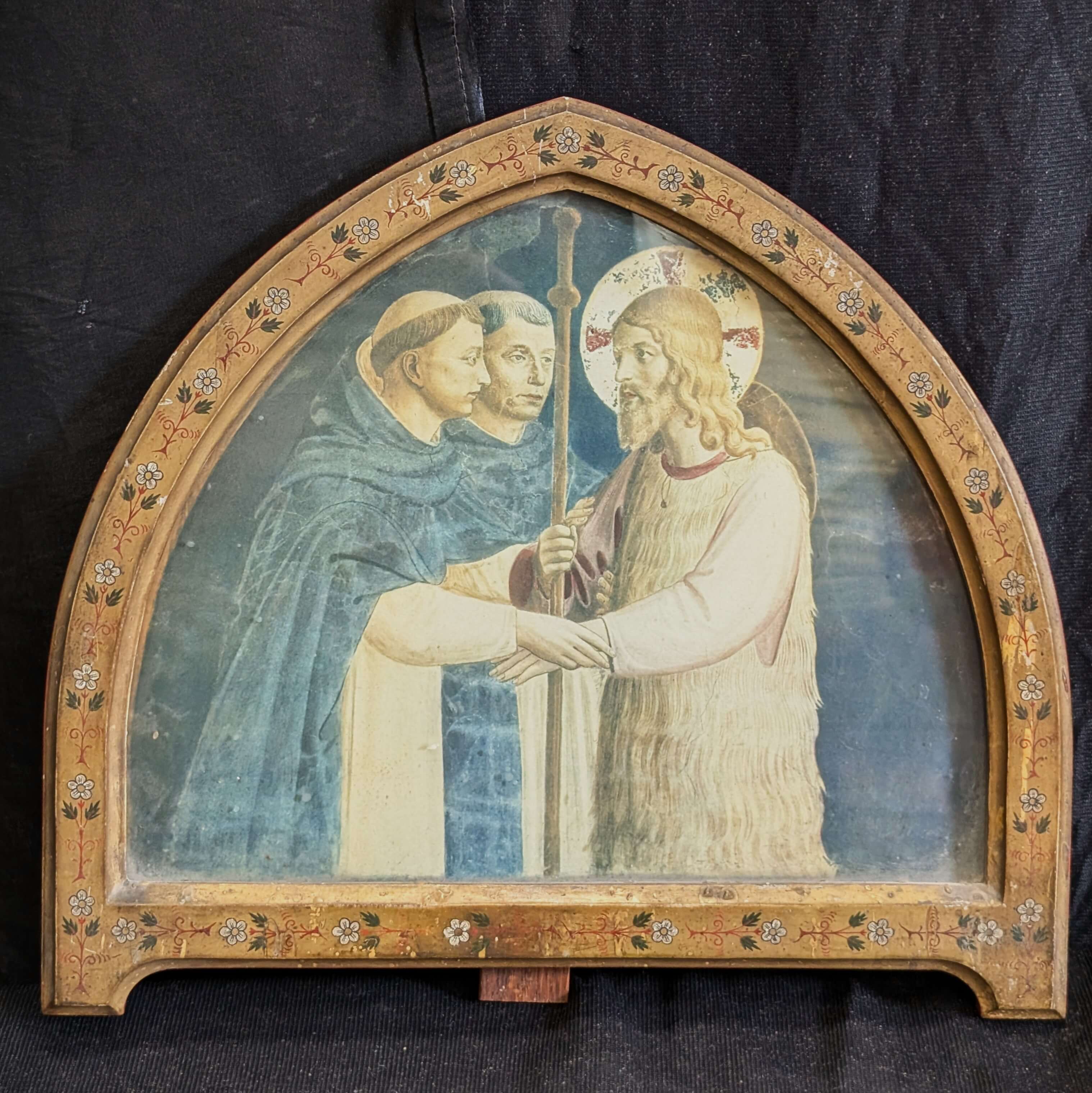 Our product shown on this page Christ Received by Two Dominicans Unusual Antique Framed Flemish Lithograph (SOLD) is currently available for hire.