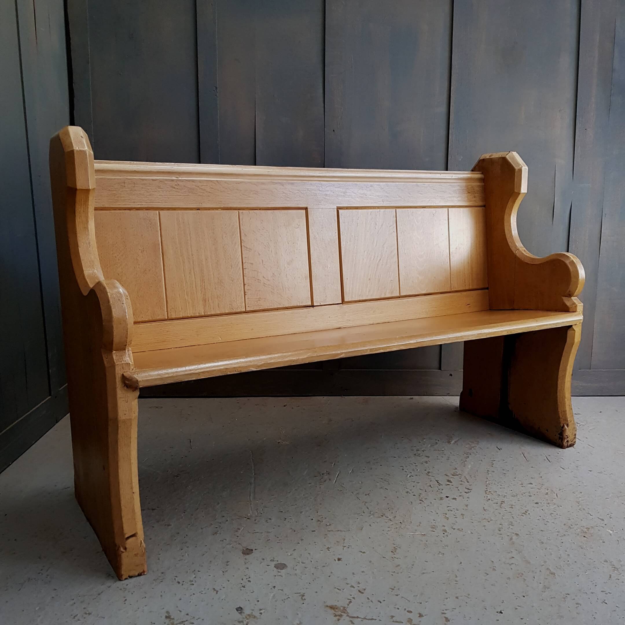 Dating from around 1900 and coming from the Cornerstone Church of Uckfield these pews are an excellent example of the art of Victorian Scumbling.  This is an intricate paint finish created using steel combs to make pine look like oak.  Previously we used to strip pews like this but now there is a good demand for authentic examples of this old art. There are scuffs and scratches accrued over the years giving this extra character.
