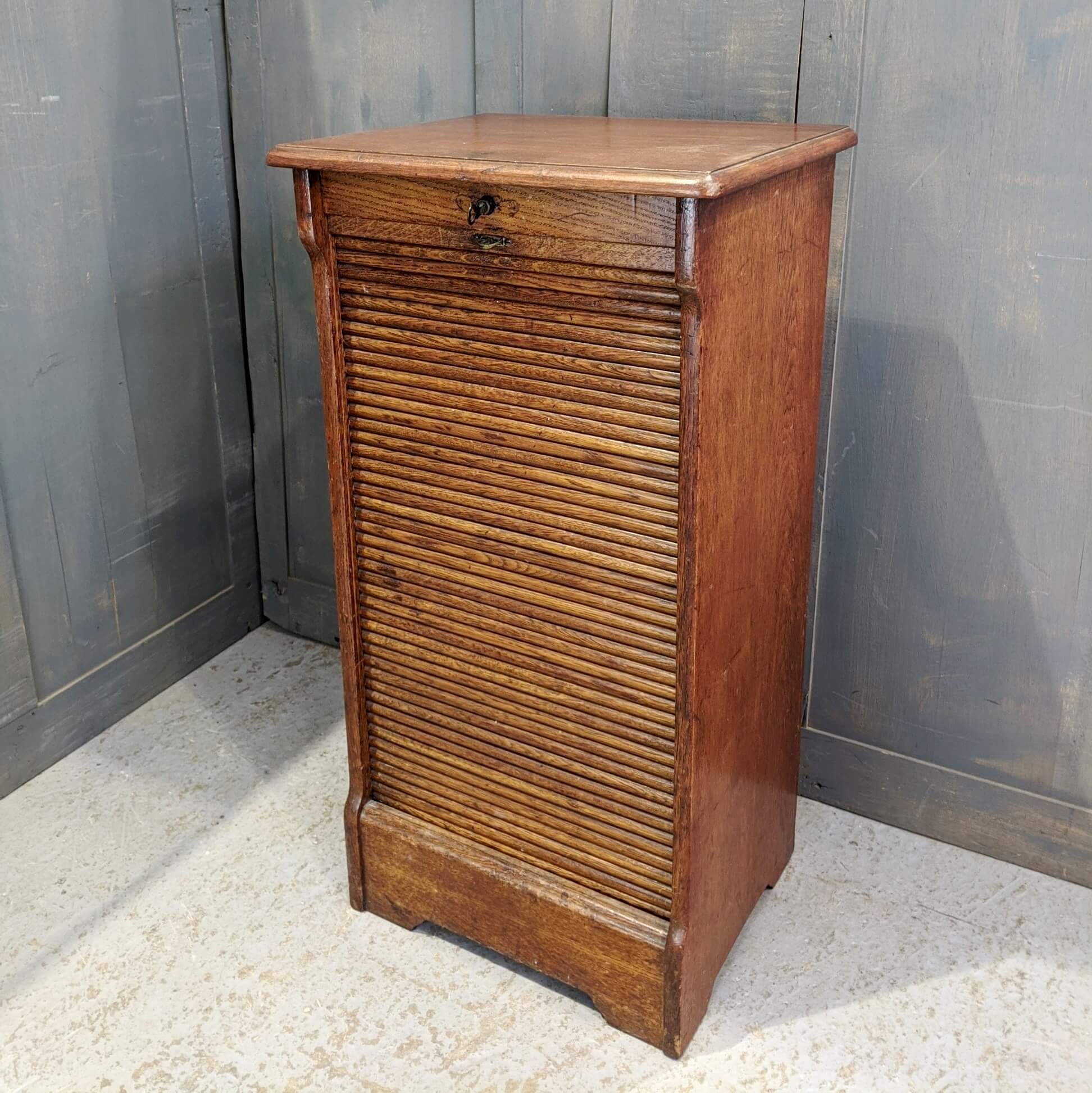 Classic 1930’s Smaller Size Oak Tambour Cabinet with Key (SOLD)