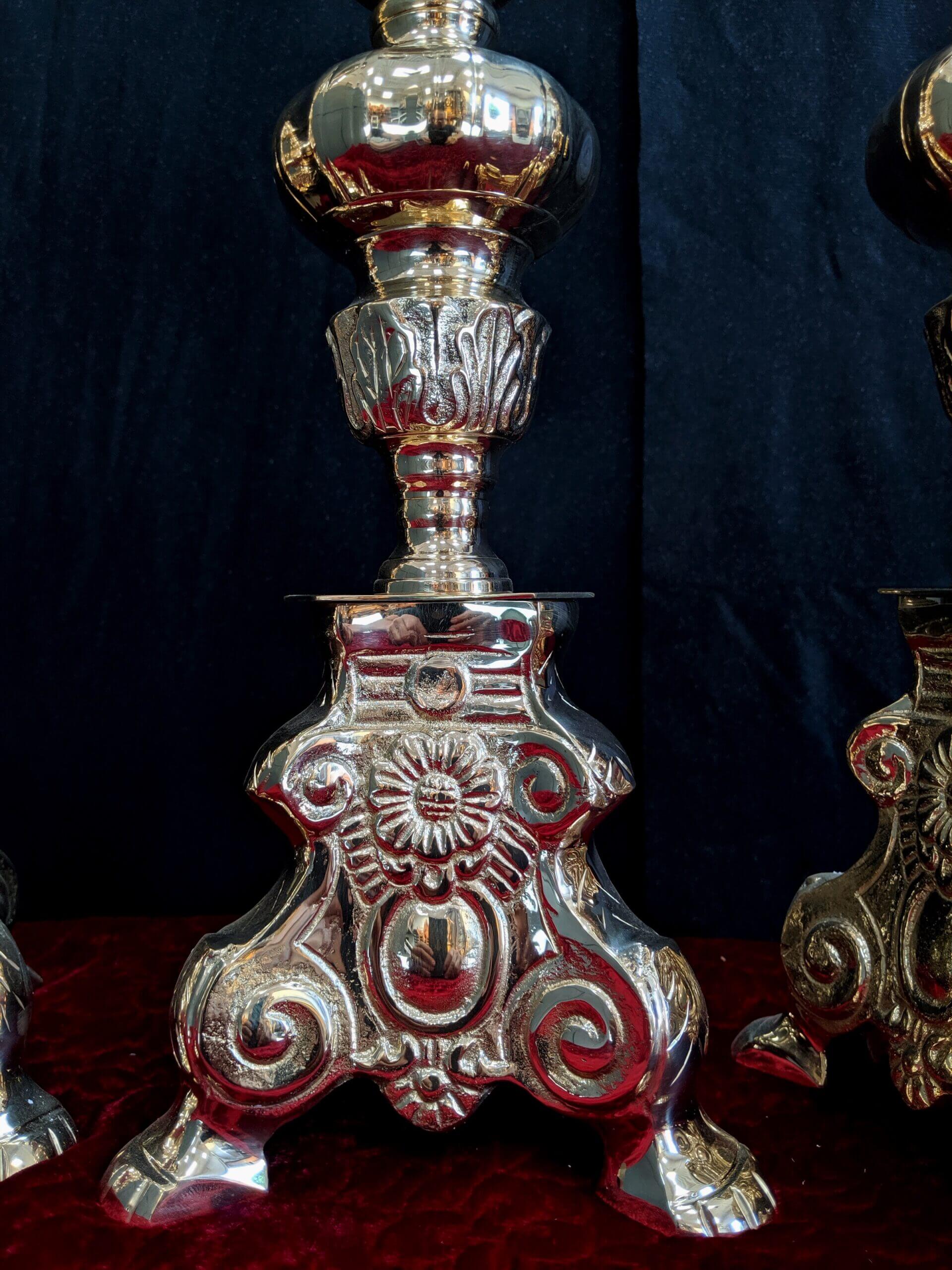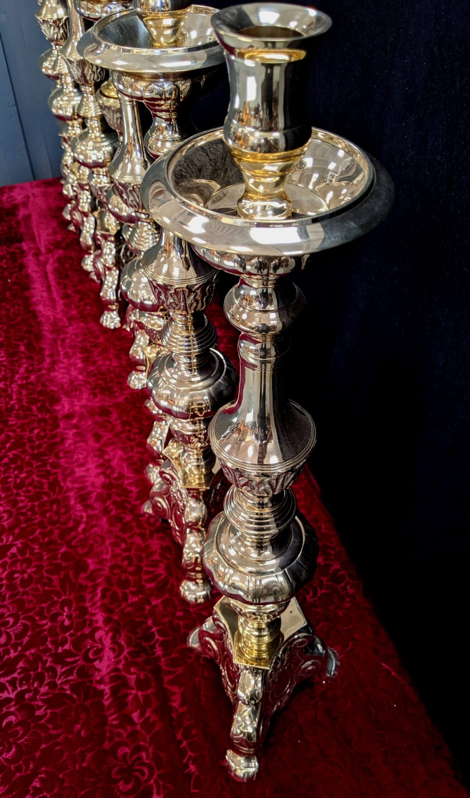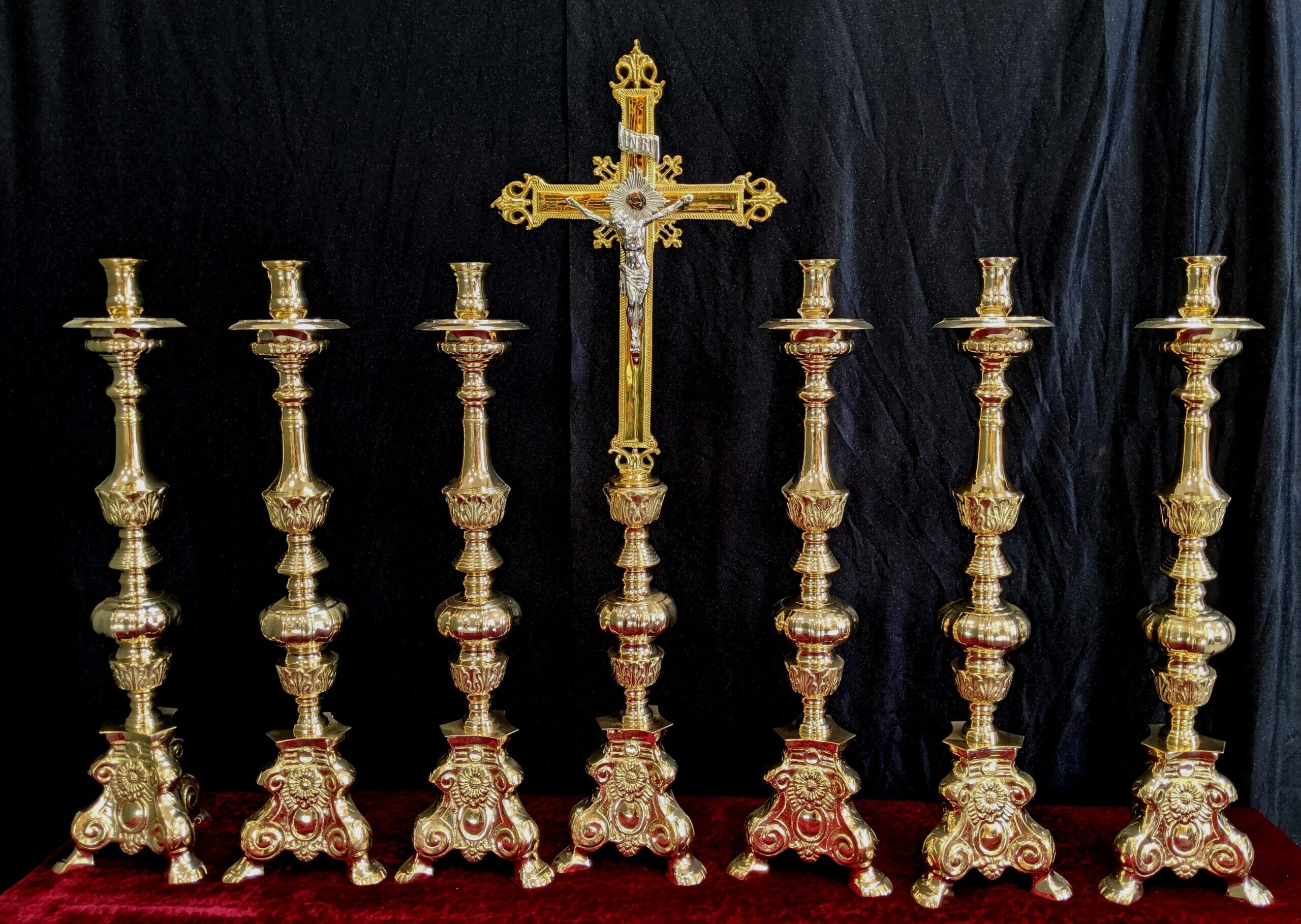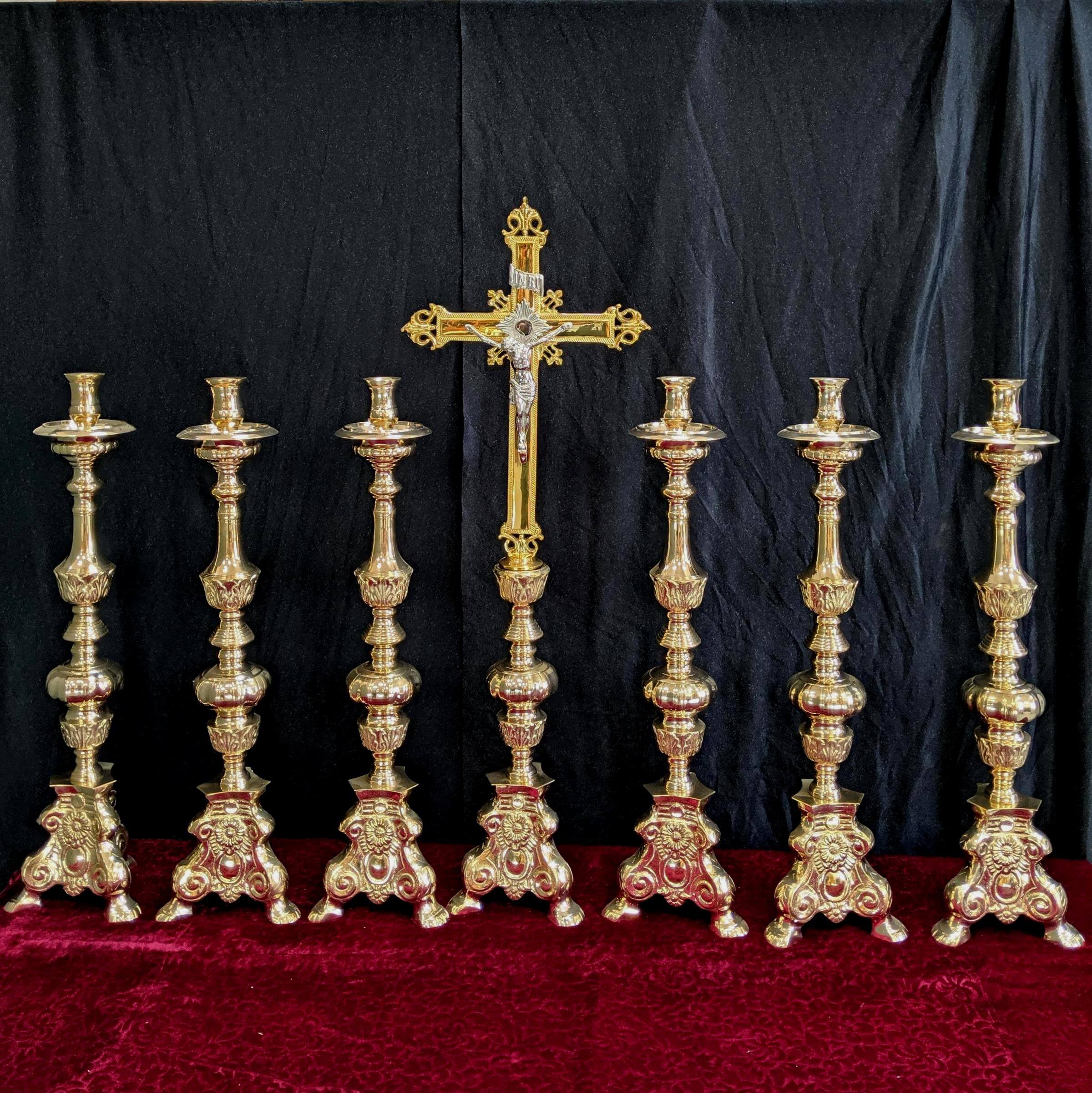 Our product shown on this page Classic Heavy Brass Large Size ‘Big Six’ Set of Candlesticks & Crucifix is currently available for hire.