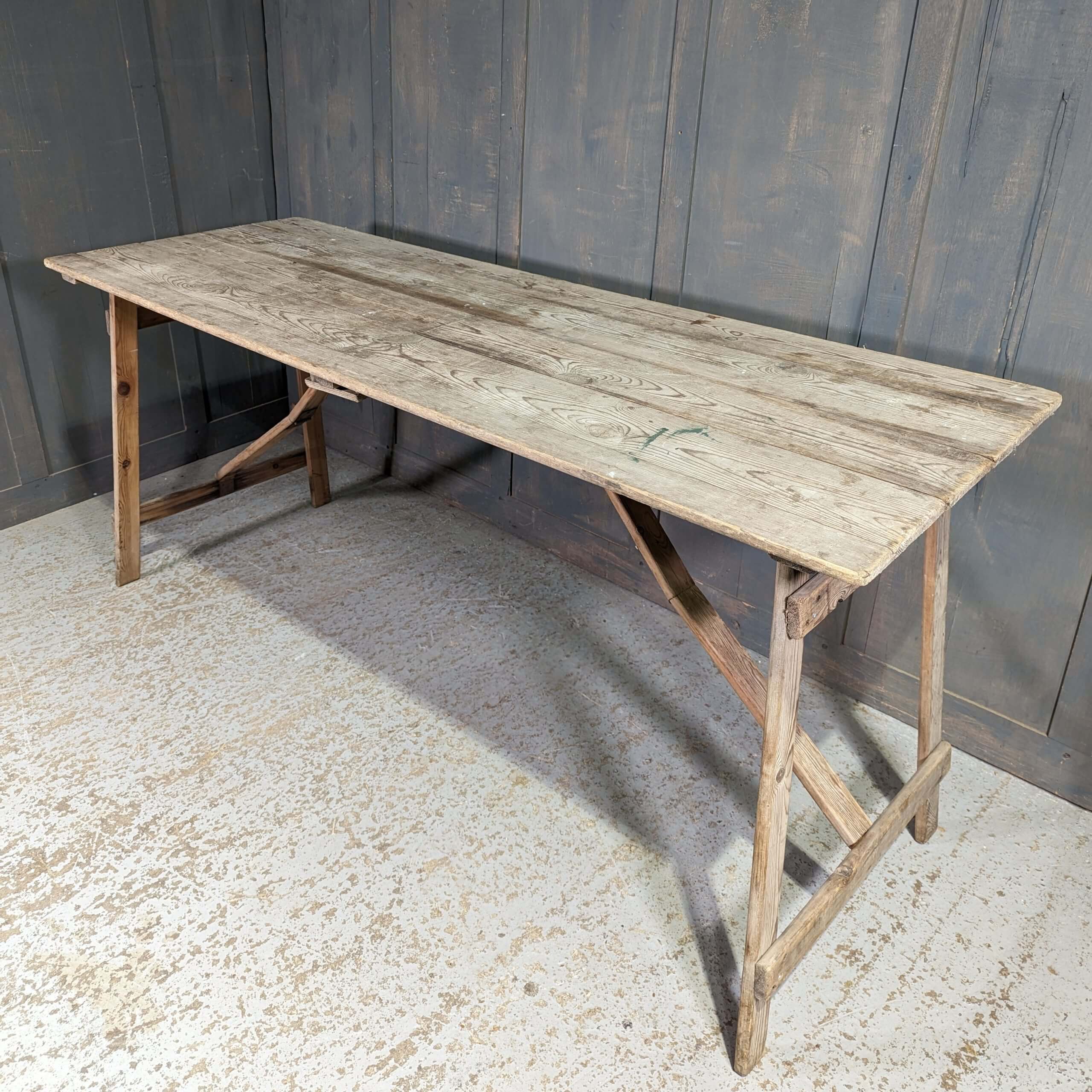 Our product shown on this page Classic Vintage Pine Plank Church Trestle Table with Fold Up Legs (SOLD) is currently available for hire.
