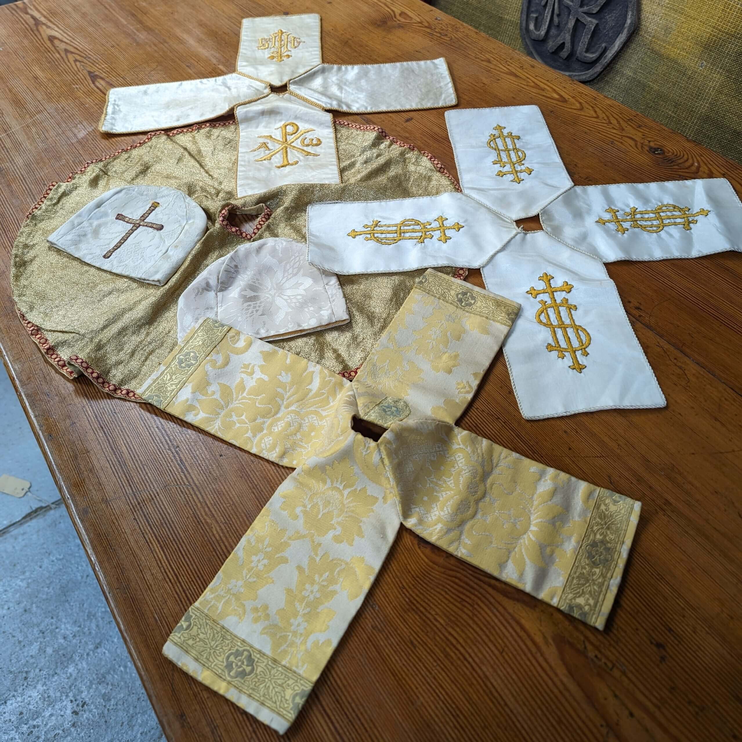 Our product shown on this page Collection of 6 Antique & Vintage Ciborium Covers Embroidered Silk (SOLD) is currently available for hire.