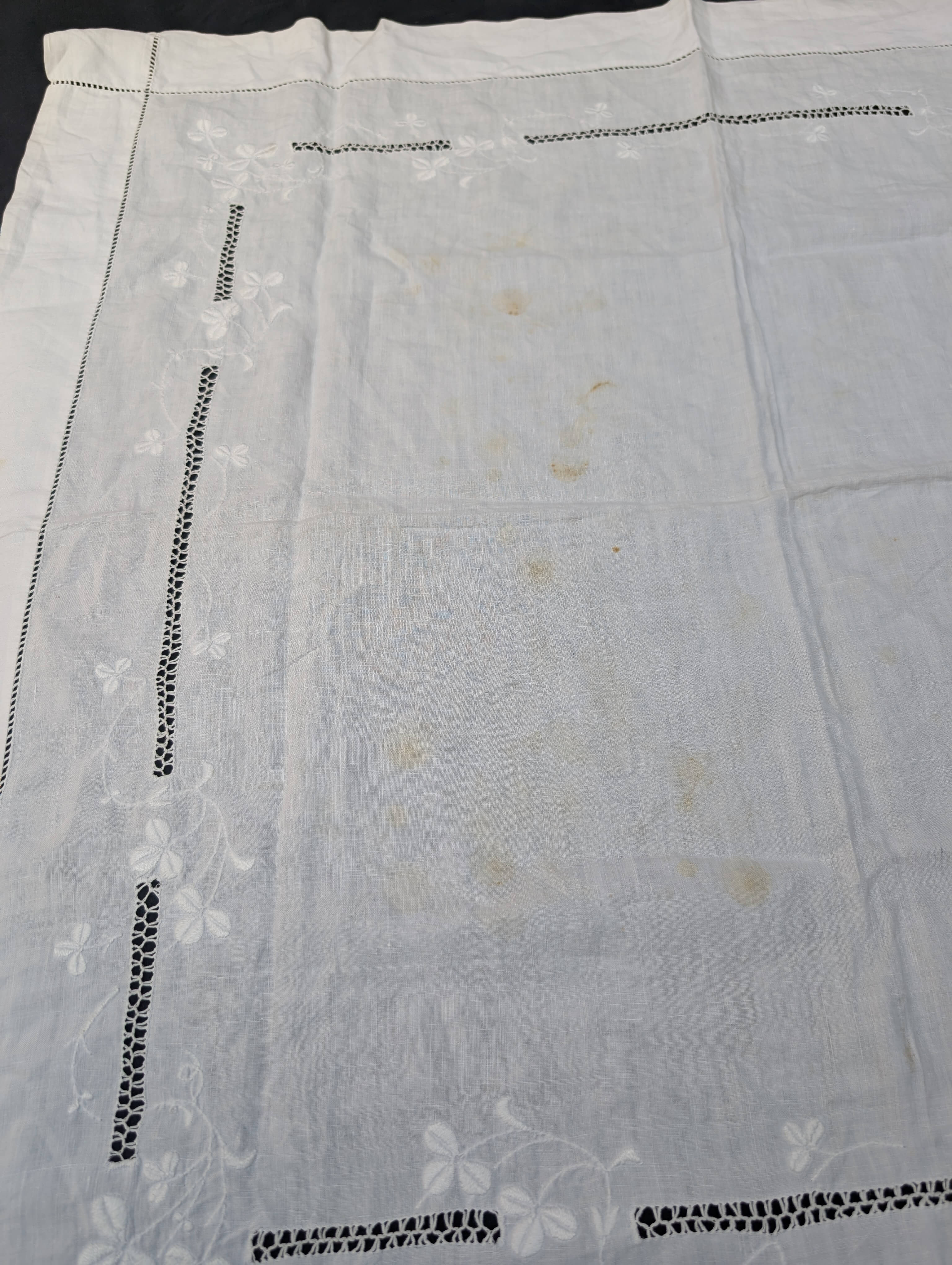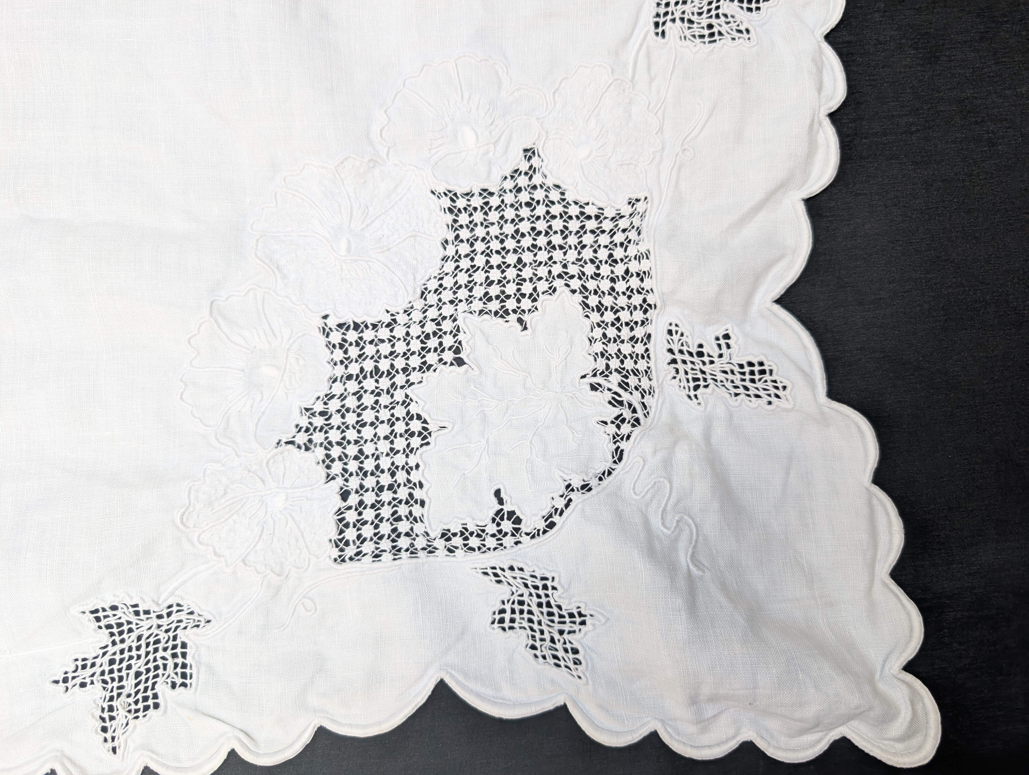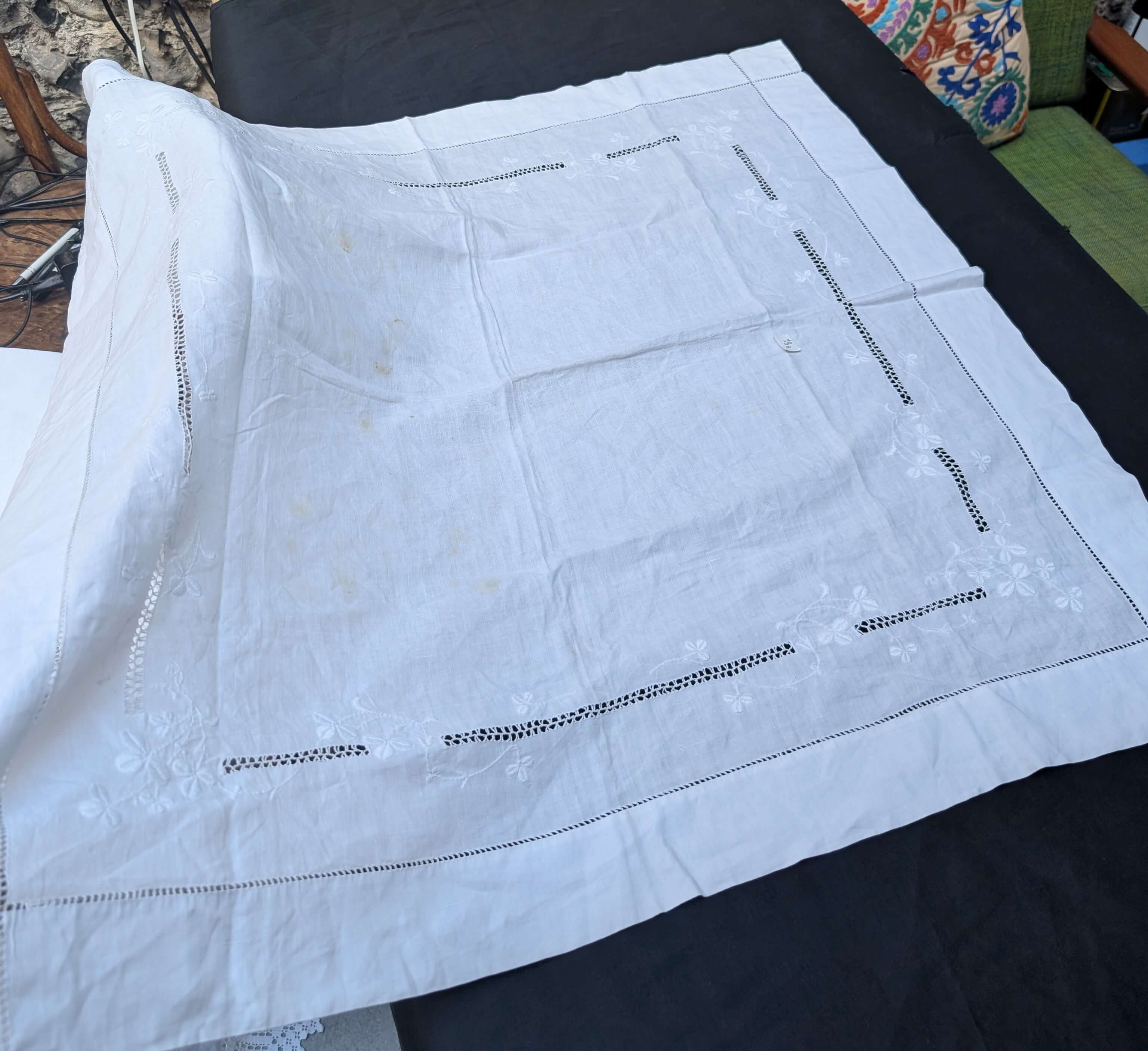 Our product shown on this page Communion Linen #13 – 3 Nice Embroidered Lacework Altar Cloths Runners Fair Linens is currently available for hire.