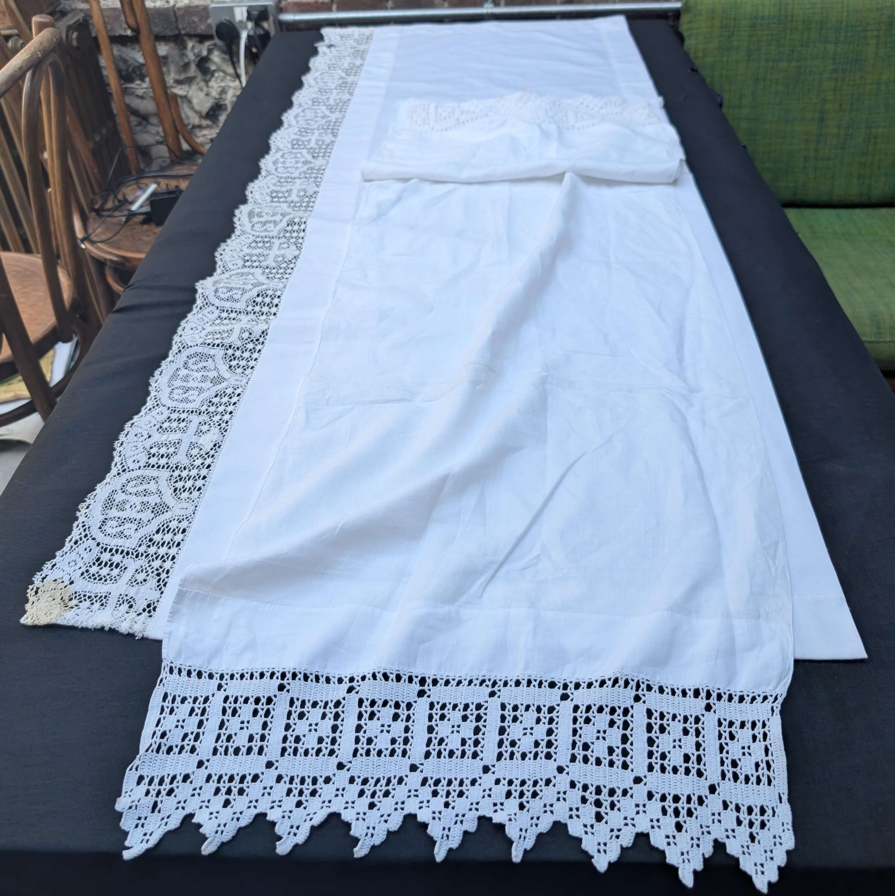 Our product shown on this page Communion Linen #14 – 2 Altar Runners 1 Particularly Nice with 5 Crosses Fair Linens (SOLD) is currently available for hire.