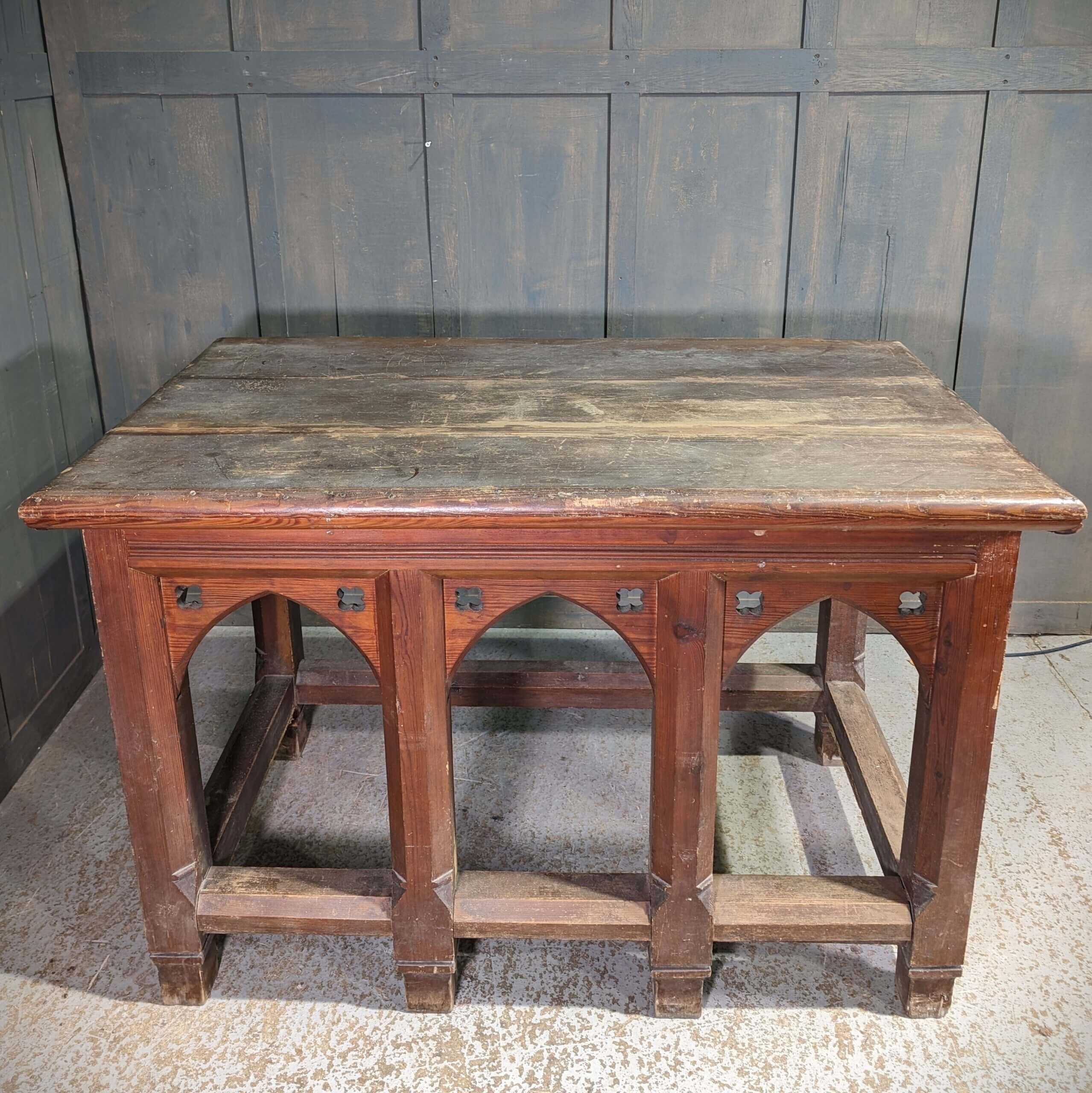 Our product shown on this page Crypt Find Massively Heavy Gothic Antique Time-Worn Pitch Pine Welsh Church Altar (SOLD) is currently available for hire.